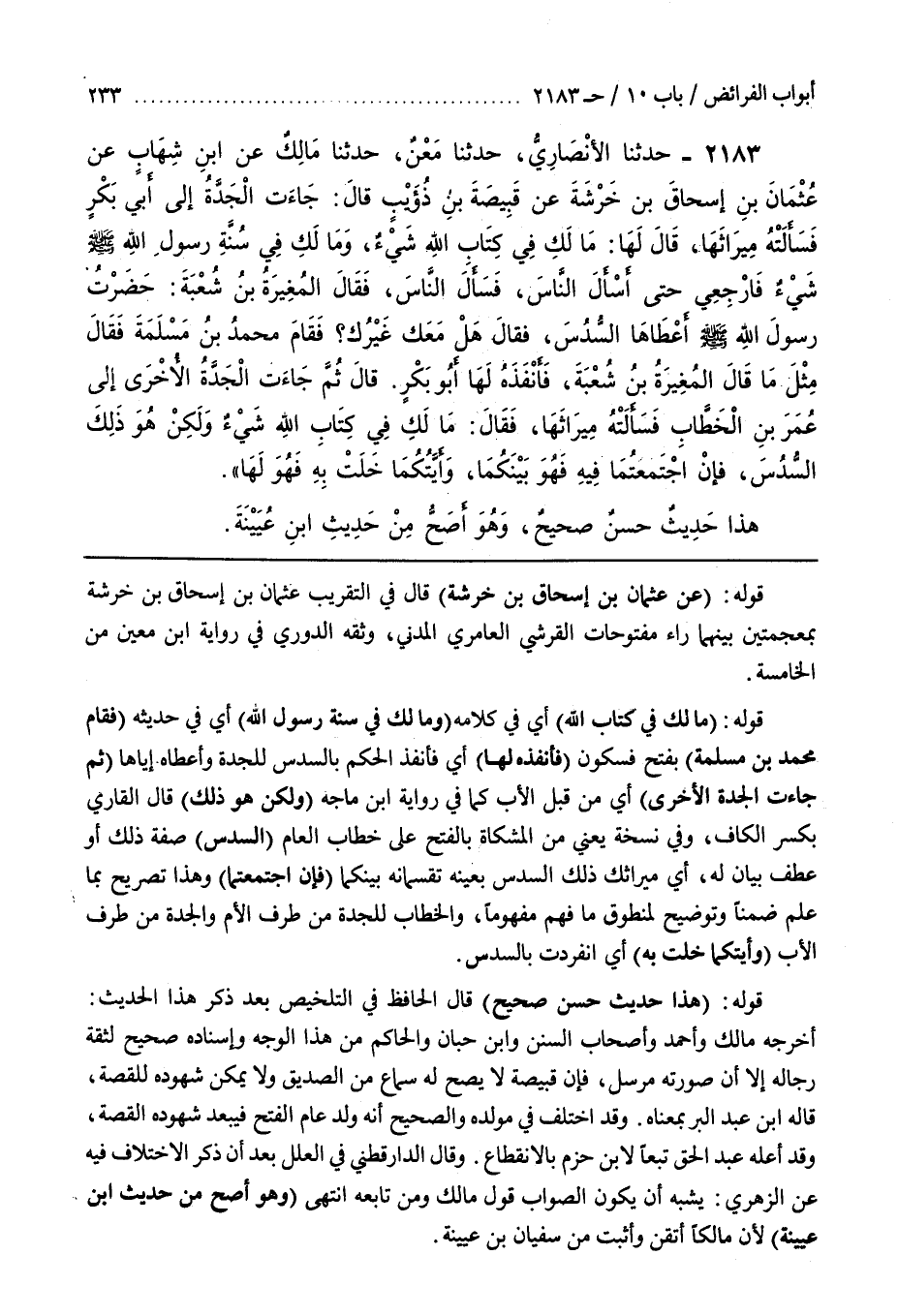 قوله (مالك في كتاب الله) أي في كلامه (ومالك فِي سُنَّةِ رَسُولِ اللَّهِ) أَيْ فِي حَدِيثِهِ (فَقَامَ مُحَمَّدُ بْنُ مَسْلَمَةَ) بِفَتْحٍ فَسُكُونٍ (فَأَنْفَذَهُ لَهَا) أَيْ فَأَنْفَذَ الْحُكْمَ بِالسُّدُسِ لِلْجَدَّةِ وَأَعْطَاهُ إِيَّاهَا (ثُمَّ جَاءَتِ الْجَدَّةُ الْأُخْرَى) أَيْ مِنْ قبل الأب كما في رواية بن ماجة (ولكن هو ذلك) قال القارىء بِكَسْرِ الْكَافِ وَفِي نُسْخَةٍ يَعْنِي مِنَ الْمِشْكَاةِ بِالْفَتْحِ عَلَى خِطَابِ الْعَامِّ (السُّدُسَ) صِفَةُ ذَلِكَ أَوْ عَطْفُ بَيَانٍ لَهُ أَيْ مِيرَاثُكِ ذَلِكَ السُّدُسُ بِعَيْنِهِ تَقْسِمَانِهِ بَيْنَكُمَا (فَإِنِ اجْتَمَعْتُمَا) وَهَذَا تَصْرِيحٌ بِمَا عُلِمَ ضِمْنًا وَتَوْضِيحٌ لِمَنْطُوقِ مَا فُهِمَ مَفْهُومًا وَالْخِطَابُ لِلْجَدَّةِ مِنْ طَرَفِ الْأُمِّ وَالْجَدَّةِ مِنْ طَرَفِ الْأَبِ (وَأَيَّتُكُمَا خَلَتْ بِهِ) أَيِ انْفَرَدَتْ بِالسُّدُسِ
