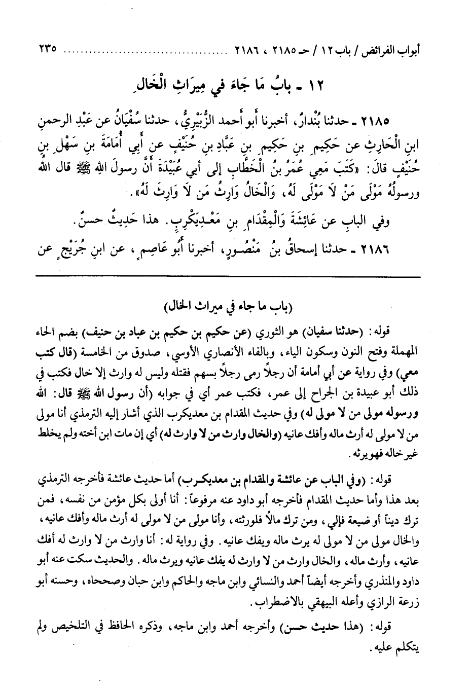 12 - (بَاب مَا جَاءَ فِي مِيرَاثِ الْخَالِ)