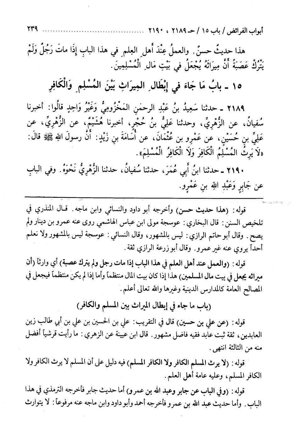 5 - (بَاب مَا جَاءَ فِي إِبْطَالِ الْمِيرَاثِ بَيْنَ الْمُسْلِمِ وَالْكَافِرِ)