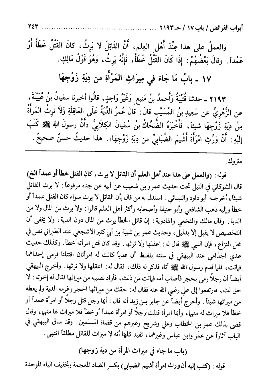 8 - (بَاب مَا جَاءَ فِي مِيرَاثِ الْمَرْأَةِ مِنْ دِيَةِ زَوْجِهَا)