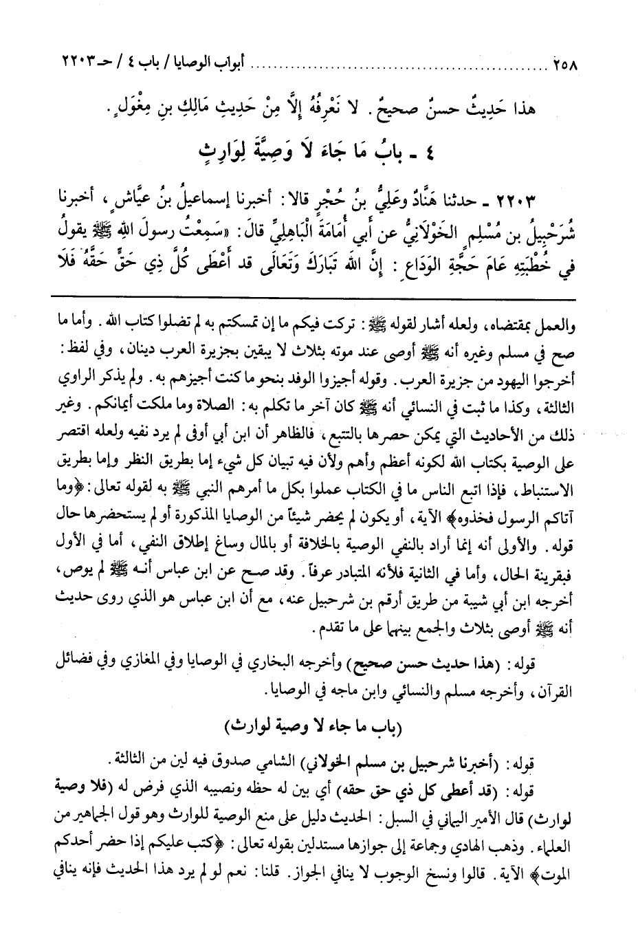 (باب ما جاء لاوصية لِوَارِثٍ)