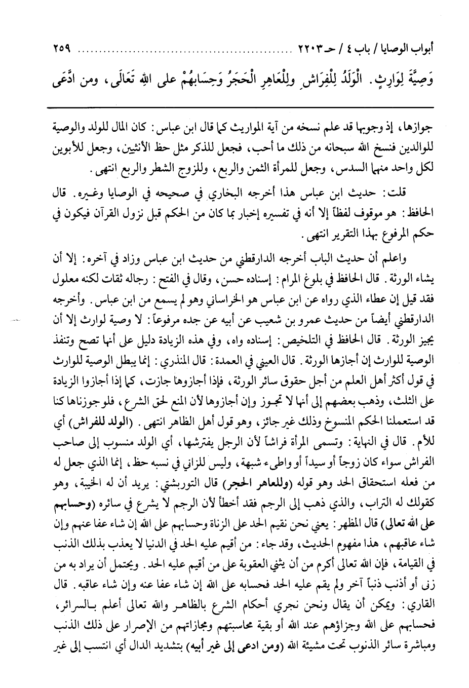 قلت حديث بن عَبَّاسٍ هَذَا أَخْرَجَهُ الْبُخَارِيُّ فِي صَحِيحِهِ فِي الْوَصَايَا وَغَيْرِهِ