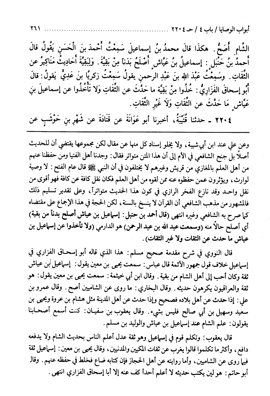 قَالَ النَّوَوِيُّ فِي شَرْحِ مُقَدِّمَةِ صَحِيحِ مُسْلِمٍ هَذَا الَّذِي قَالَهُ أَبُو إِسْحَاقَ الْفَزَارِيُّ فِي إِسْمَاعِيلَ خِلَافُ قَوْلِ جُمْهُورِ الْأَئِمَّةِ قَالَ عَبَّاسٌ سَمِعْتُ يَحْيَى بْنَ مَعِينٍ يَقُولُ إِسْمَاعِيلُ بْنُ عَيَّاشٍ ثِقَةٌ وَكَانَ أَحَبَّ إِلَى أَهْلِ الشَّامِ مِنْ بَقِيَّةَ