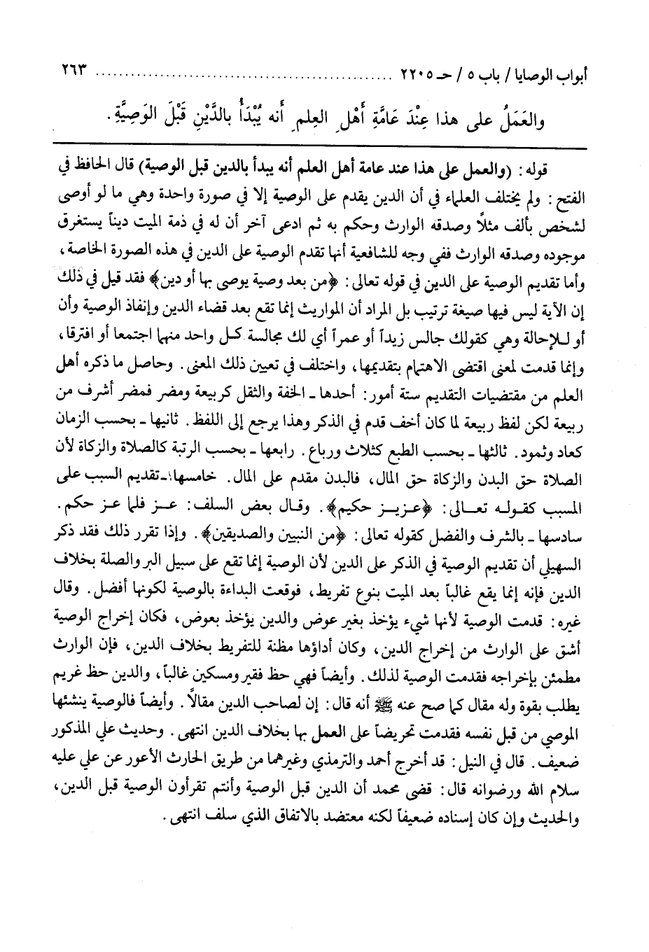 قَالَ فِي النَّيْلِ قَدْ أَخْرَجَ أَحْمَدُ وَالتِّرْمِذِيُّ وَغَيْرُهُمَا مِنْ طَرِيقِ الْحَارِثِ الْأَعْوَرِ عَنْ عَلِيٍّ عَلَيْهِ سَلَامُ اللَّهِ وَرِضْوَانُهُ قَالَ قَضَى مُحَمَّدٌ أَنَّ الدَّيْنَ قَبْلَ الْوَصِيَّةِ وأنتم تقرأون الْوَصِيَّةَ قَبْلَ الدَّيْنِ وَالْحَدِيثُ وَإِنْ كَانَ إِسْنَادُهُ ضَعِيفًا لَكِنَّهُ مُعْتَضِدٌ بِالِاتِّفَاقِ الَّذِي سَلَفَ انْتَهَى