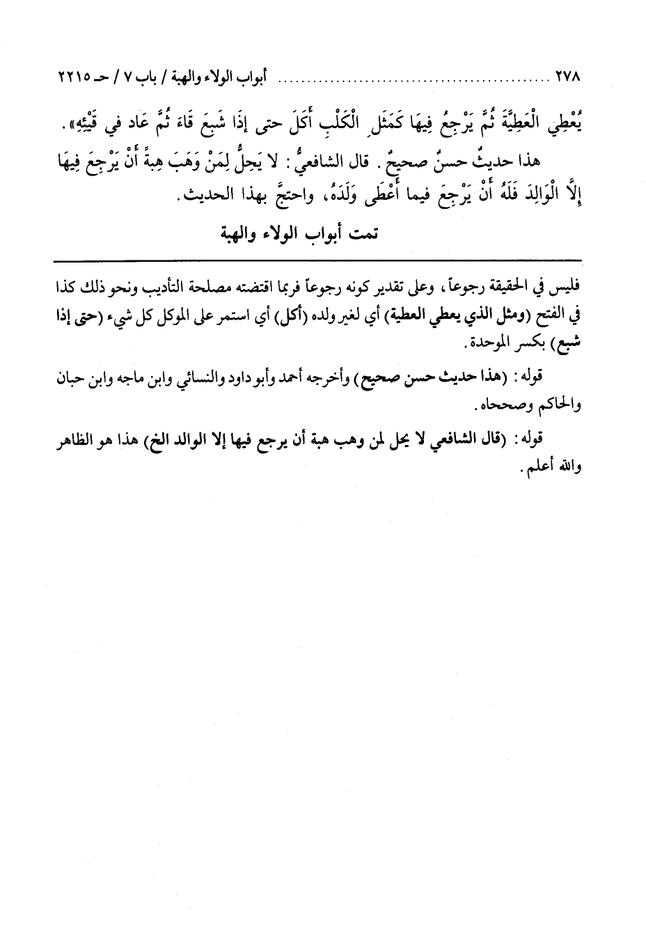 قَوْلُهُ (قَالَ الشَّافِعِيُّ لَا يَحِلُّ لِمَنْ وَهَبَ هِبَةً أَنْ يَرْجِعَ فِيهَا إِلَّا الْوَالِدَ إِلَخْ) هَذَا هُوَ الظَّاهِرُ وَاللَّهُ أعلم
