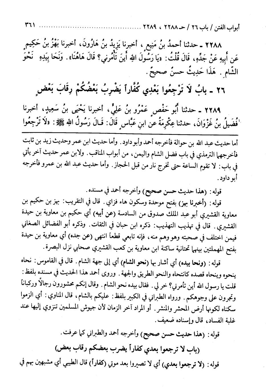 [2193] قَوْلُهُ (لَا تَرْجِعُوا بَعْدِي) أَيْ لَا تَصِيرُوا بَعْدَ مَوْتِي (كُفَّارًا) قَالَ الطِّيبِيُّ أَيْ مُشَبَّهِينَ بِهِمْ فِي
