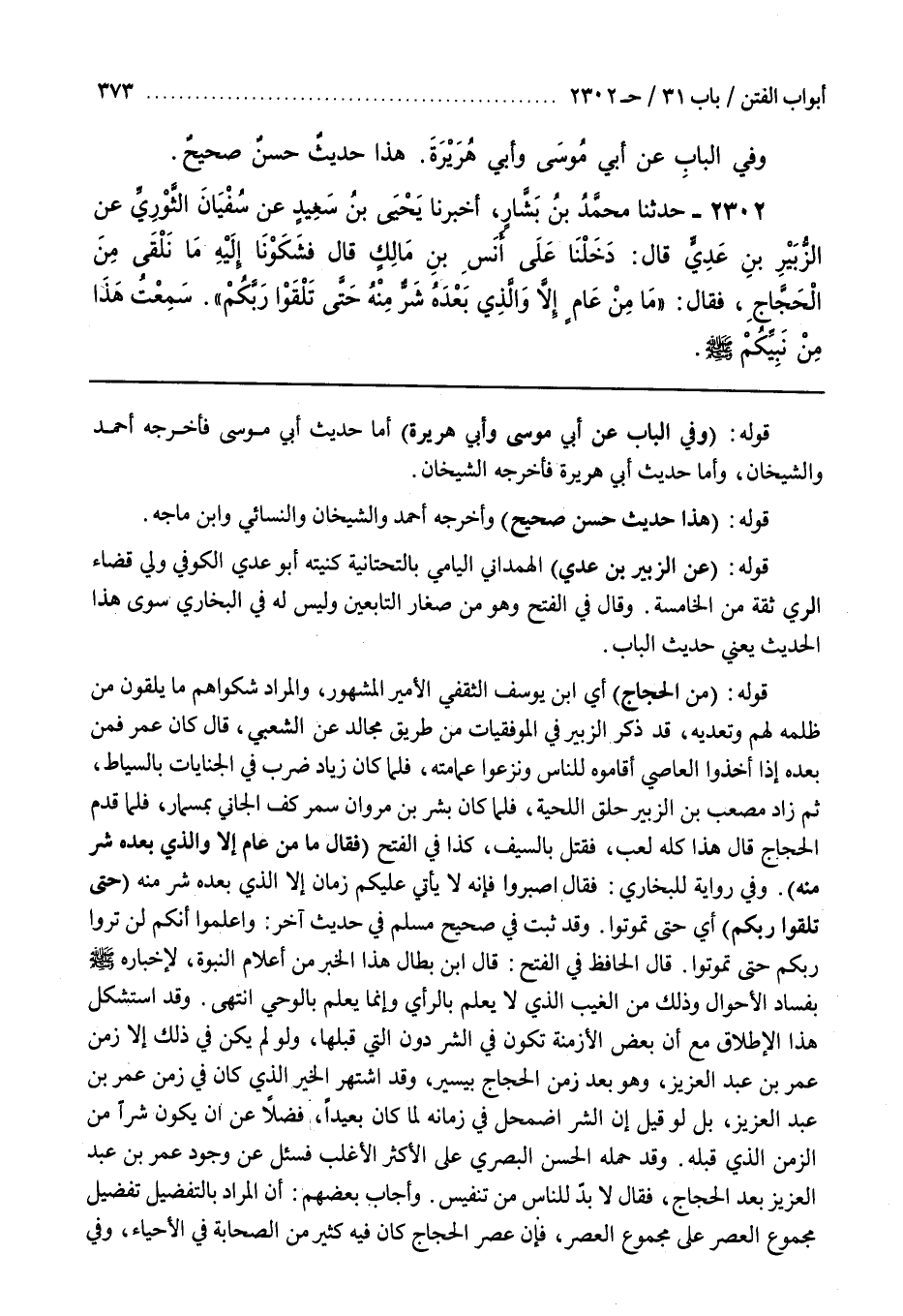 وَقَدِ اسْتُشْكِلَ هَذَا الْإِطْلَاقُ مَعَ أَنَّ بَعْضَ الْأَزْمِنَةِ تَكُونُ فِي الشَّرِّ دُونَ الَّتِي قَبْلَهَا وَلَوْ لَمْ يَكُنْ فِي ذَلِكَ إِلَّا زَمَنُ عُمَرَ بْنِ عَبْدِ الْعَزِيزِ وَهُوَ بَعْدَ زَمَنِ الْحَجَّاجِ بِيَسِيرٍ وَقَدِ اشْتُهِرَ الْخَيْرُ الَّذِي كَانَ فِي زَمَنِ عُمَرَ بْنِ عبد العزيز بل لو قيل إن الشرا ضمحل فِي زَمَانِهِ لَمَّا كَانَ بَعِيدًا