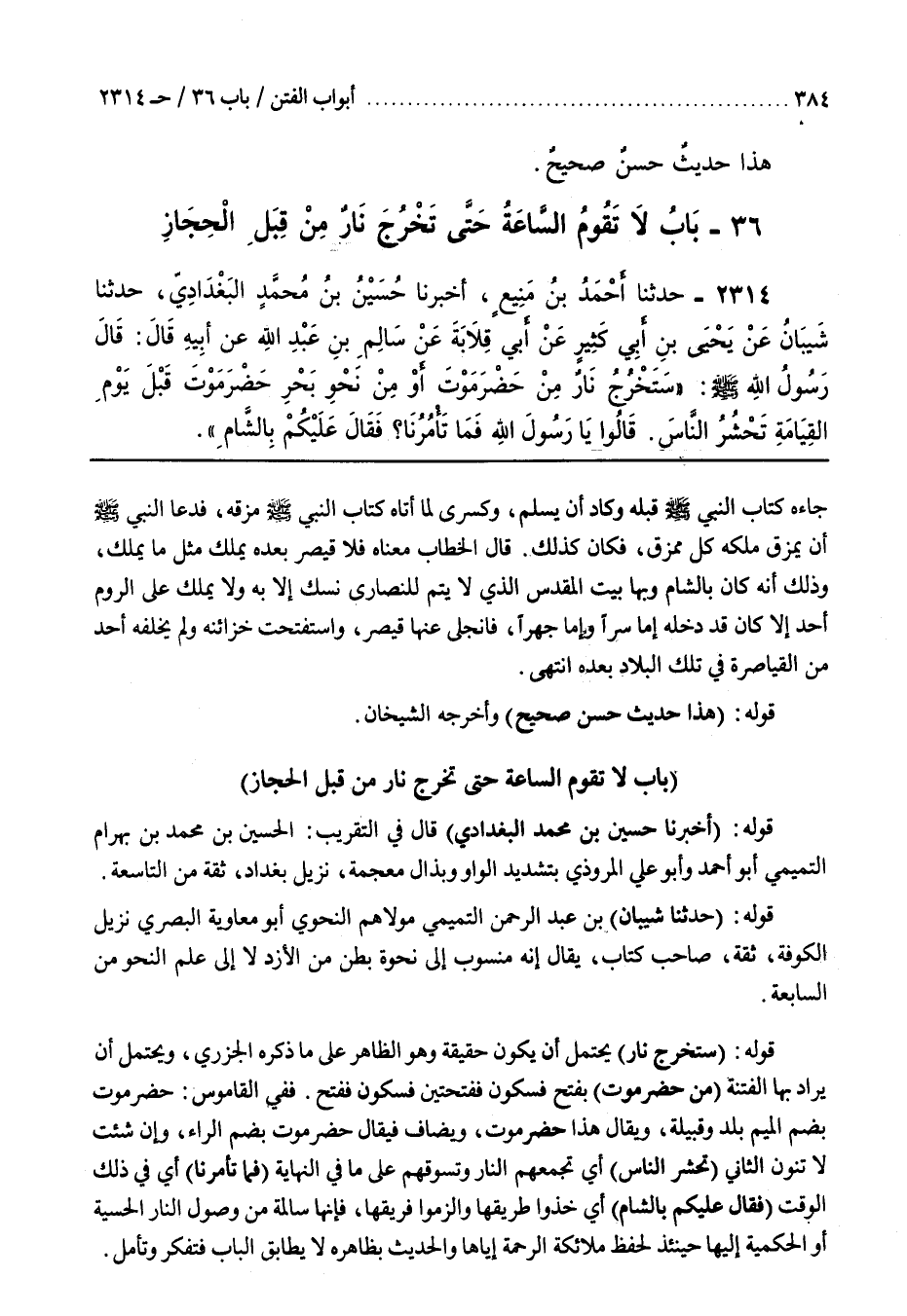 0 - (بَابِ لَا تَقُومُ السَّاعَةُ حَتَّى تَخْرُجَ نَارٌ مِنْ قِبَلِ الْحِجَازِ)
