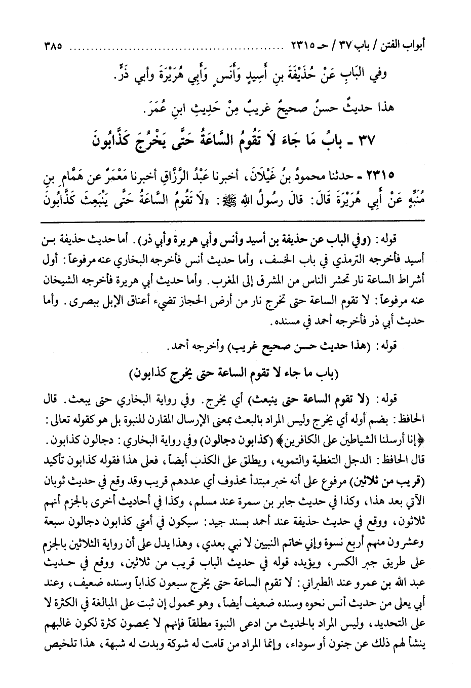 1 - (بَاب مَا جَاءَ لَا تَقُومُ السَّاعَةُ حَتَّى يَخْرُجَ كَذَّابُونَ)