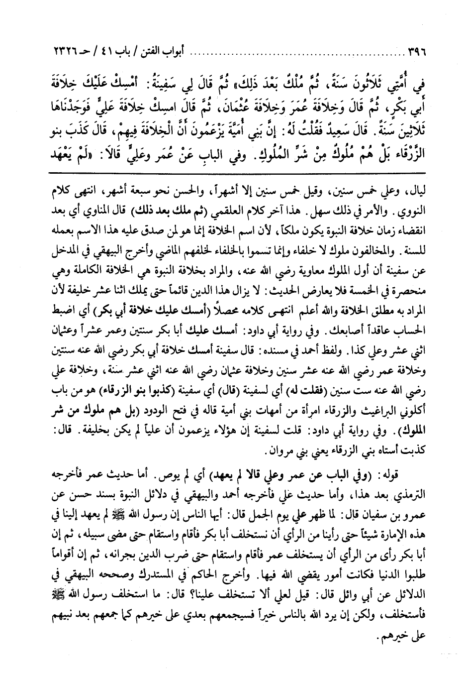 وَالْمُخَالِفُونَ مُلُوكٌ لَا خُلَفَاءُ وَإِنَّمَا تَسَمَّوْا بِالْخُلَفَاءِ لِخَلَفِهِمِ الْمَاضِي وَأَخْرَجَ الْبَيْهَقِيُّ فِي الْمَدْخَلِ عَنْ سَفِينَةَ أَنَّ أَوَّلَ الْمُلُوكِ مُعَاوِيَةُ رَضِيَ اللَّهُ عَنْهُ وَالْمُرَادُ بِخِلَافَةِ النُّبُوَّةِ هِيَ الْخِلَافَةُ الْكَامِلَةُ وَهِيَ مُنْحَصِرَةٌ فِي الْخَمْسَةِ فَلَا يُعَارِضُ الْحَدِيثُ لَا يَزَالُ هَذَا الدِّينُ قَائِمًا حَتَّى يَمْلِكَ اثْنَا عَشَرَ خَلِيفَةً لِأَنَّ الْمُرَادَ بِهِ مُطْلَقُ الْخِلَافَةِ وَاللَّهُ أَعْلَمُ انْتَهَى