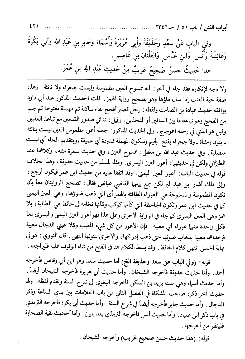 وَلَا وَجْهَ لِإِنْكَارِهِ فَقَدْ جَاءَ فِي آخِرَ أَنَّهُ مَمْسُوحُ الْعَيْنِ مَطْمُوسَةٌ وَلَيْسَتْ جَحْرَاءَ وَلَا ناتئة