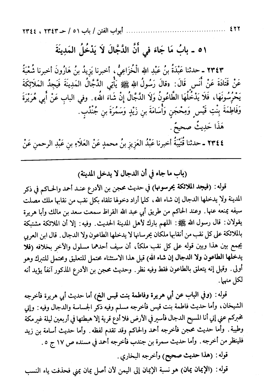59 - (بَاب مَا جَاءَ فِي الدَّجَّالِ لَا يَدْخُلُ الْمَدِينَةَ)