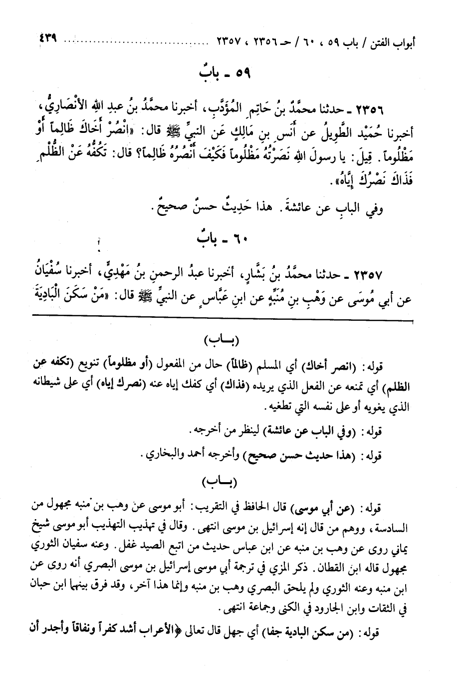 66 - باب [2255] قَوْلُهُ (انْصُرْ أَخَاكَ) أَيِ الْمُسْلِمَ (ظَالِمًا) حَالٌ مِنَ الْمَفْعُولِ (أَوْ مَظْلُومًا) تَنْوِيعٌ (تَكُفُّهُ عَنِ الظُّلْمِ) أَيْ تَمْنَعُهُ عَنِ الْفِعْلِ الَّذِي يُرِيدُهُ (فَذَاكَ) أَيْ كَفُّكَ إِيَّاهُ عَنْهُ (نَصْرُكَ إِيَّاهُ) أَيْ عَلَى شَيْطَانِهِ الَّذِي يُغْوِيهِ أَوْ عَلَى نَفْسِهِ الَّتِي تُطْغِيهِ