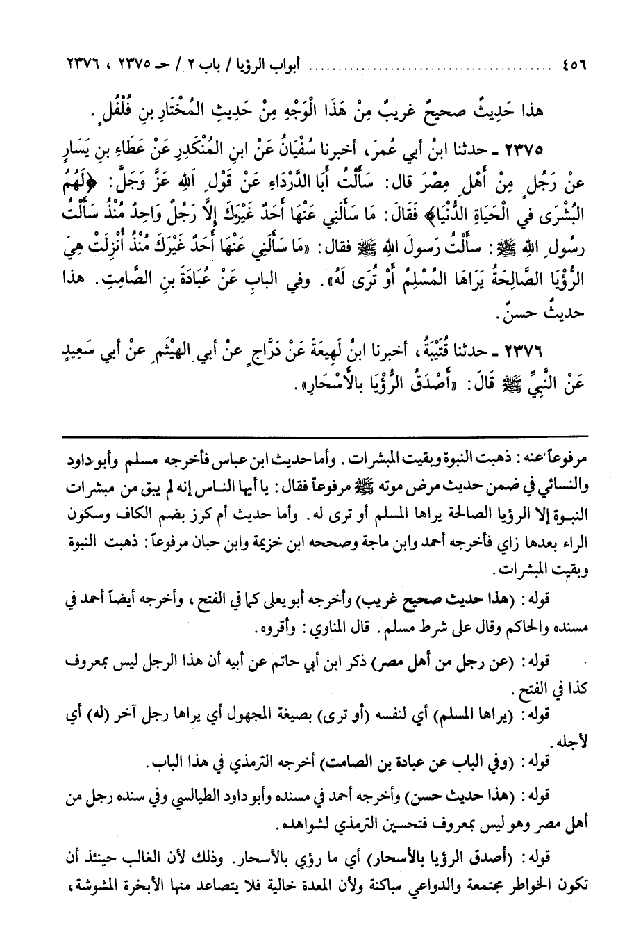 وَأَمَّا حديث بن عَبَّاسٍ فَأَخْرَجَهُ مُسْلِمٌ وَأَبُو دَاوُدَ وَالنَّسَائِيُّ فِي ضِمْنِ حَدِيثِ مَرَضِ مَوْتِهِ صَلَّى اللَّهُ عَلَيْهِ وَسَلَّمَ مَرْفُوعًا فَقَالَ يَا أَيُّهَا النَّاسُ إِنَّهُ لَمْ يَبْقَ مِنْ مُبَشِّرَاتِ النُّبُوَّةِ إِلَّا الرُّؤْيَا الصَّالِحَةُ يَرَاهَا الْمُسْلِمُ أَوْ تُرَى لَهُ