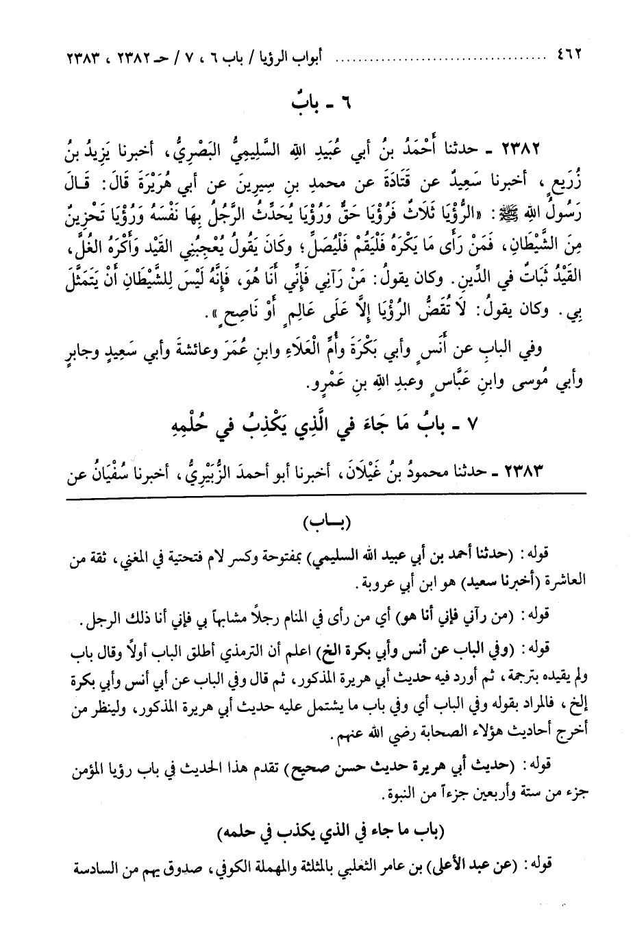 قَوْلُهُ (حَدِيثُ أَبِي هُرَيْرَةَ حَدِيثٌ حَسَنٌ صَحِيحٌ) تَقَدَّمَ هَذَا الْحَدِيثُ فِي بَابِ رُؤْيَا الْمُؤْمِنِ جُزْءٌ مِنْ سِتَّةٍ وَأَرْبَعِينَ جُزْءًا مِنَ النُّبُوَّةِ