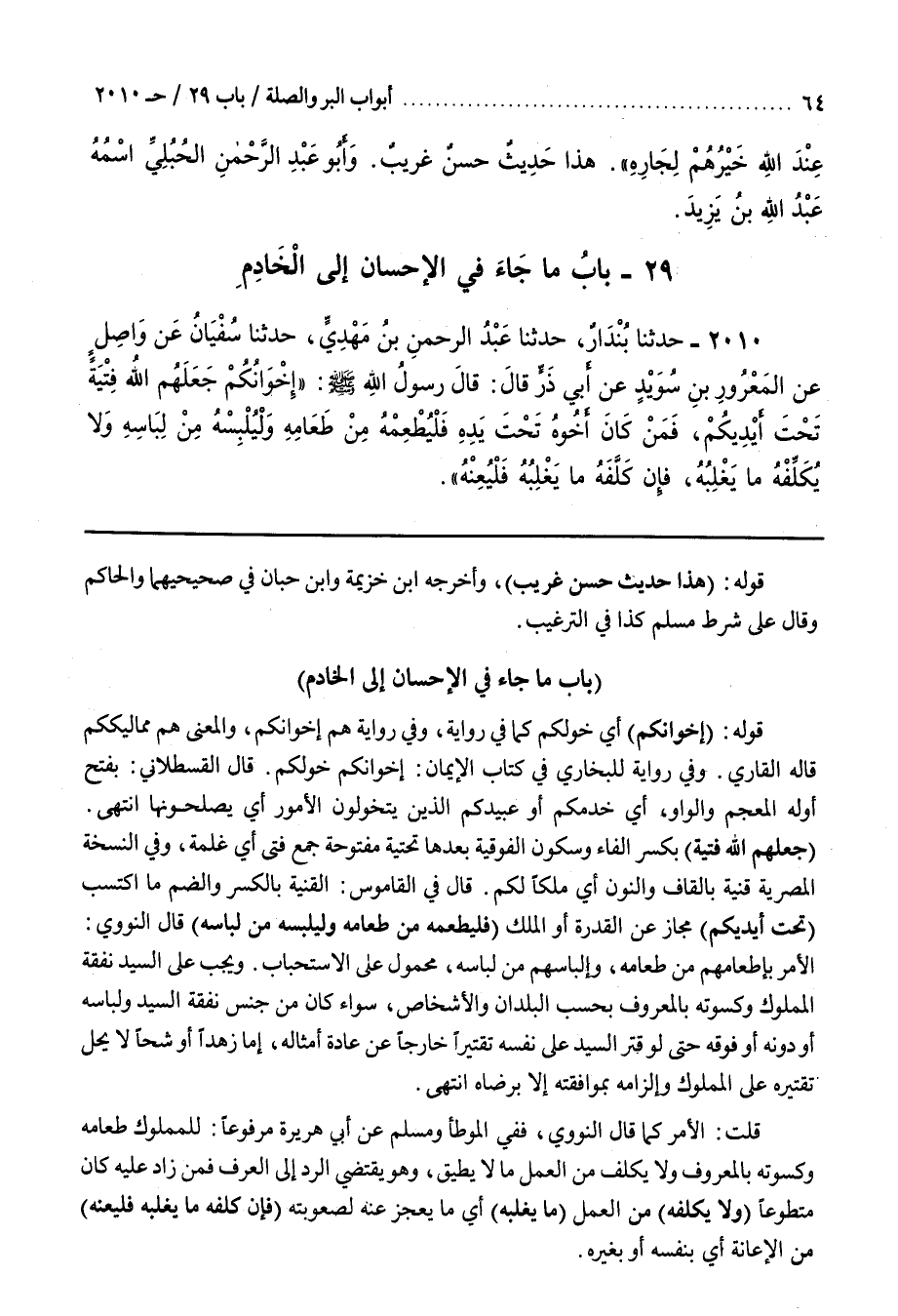 9 - (بَاب مَا جَاءَ فِي الاحسان إلى الخادم)