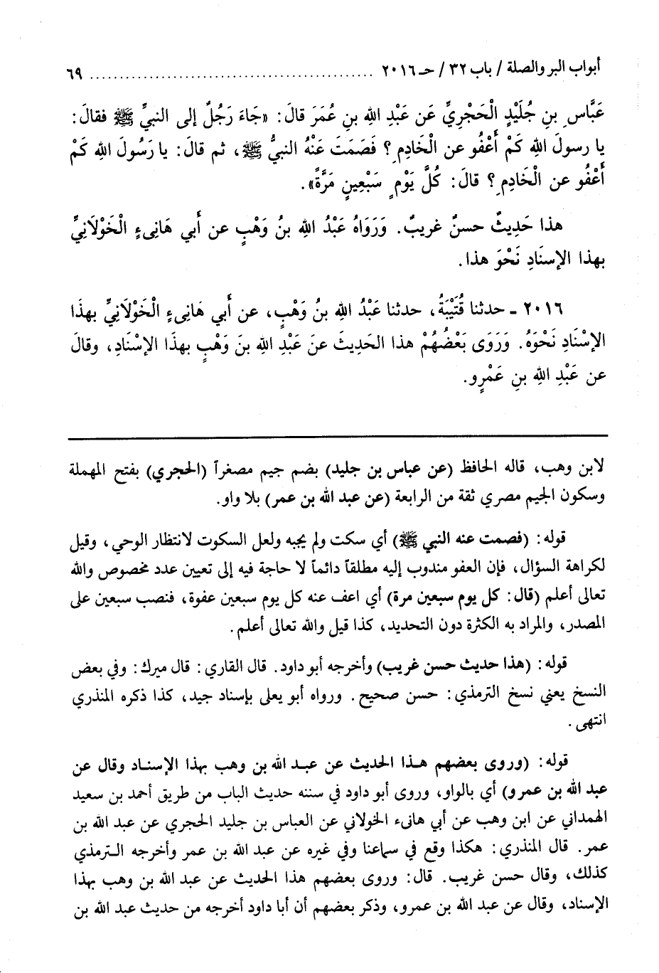 قَوْلُهُ (وَرَوَى بَعْضُهُمْ هَذَا الْحَدِيثَ عَنْ عَبْدِ اللَّهِ بْنِ وَهْبٍ بِهَذَا الْإِسْنَادِ وَقَالَ عَنْ عَبْدِ اللَّهِ بْنِ عَمْرٍو) أَيْ بِالْوَاوِ وَرَوَى أَبُو دَاوُدَ فِي سُنَنِهِ حَدِيثَ الْبَابِ مِنْ طَرِيقِ أَحْمَدَ بن سعيد الهمداني عن بن وَهْبٍ عَنْ أَبِي هَانِئٍ الْخَوْلَانِيِّ عَنِ الْعَبَّاسِ بْنِ جُلَيْدٍ الْحَجْرِيِّ عَنْ عَبْدِ اللَّهِ بْنِ عُمَرَ قَالَ الْمُنْذِرِيُّ هَكَذَا وَقَعَ فِي سَمَاعِنَا وَفِي غَيْرِهِ عَنْ عَبْدِ اللَّهِ بْنِ عُمَرَ وَأَخْرَجَهُ التِّرْمِذِيُّ كَذَلِكَ
