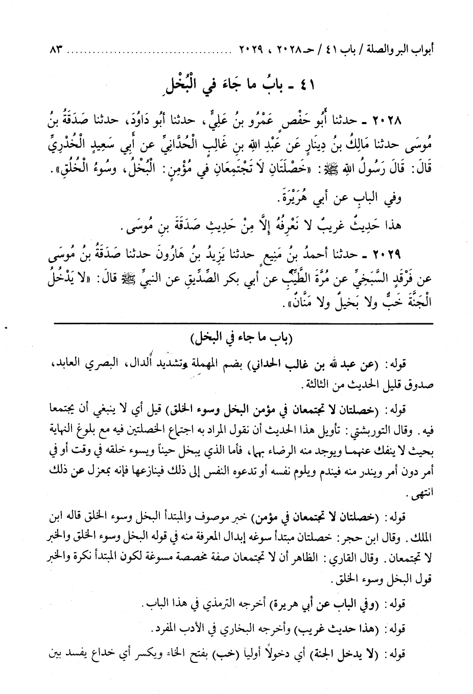 قَوْلُهُ خَصْلَتَانِ لَا تَجْتَمِعَانِ فِي مُؤْمِنٍ الْبُخْلُ وَسُوءُ الْخُلُقِ قِيلَ أَيْ لَا يَنْبَغِي أَنْ يَجْتَمِعَا فِيهِ