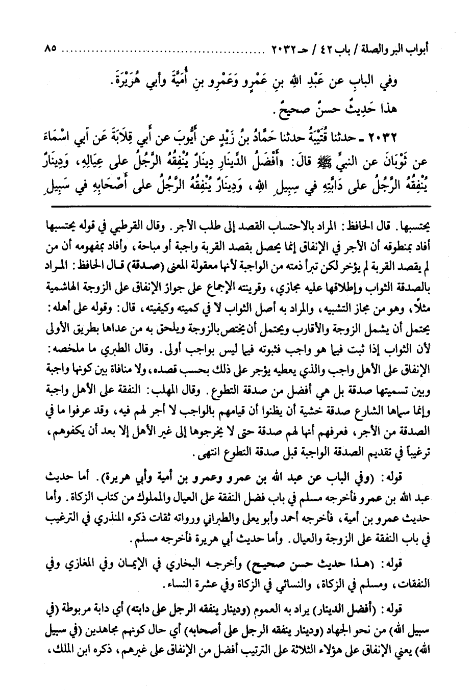 قَوْلُهُ [1966] (أَفْضَلُ الدِّينَارِ) يُرَادُ بِهِ الْعُمُومُ (وَدِينَارٌ يُنْفِقُهُ الرَّجُلُ عَلَى دَابَّتِهِ) أَيْ دَابَّةٍ مَرْبُوطَةٍ (فِي سَبِيلِ اللَّهِ) مِنْ نَحْوِ الْجِهَادِ وَدِينَارٌ يُنْفِقُهُ الرَّجُلُ عَلَى أَصْحَابِهِ) أَيْ حَالَ كَوْنِهِمْ مُجَاهِدِينَ (فِي سَبِيلِ اللَّهِ) يَعْنِي الْإِنْفَاقَ عَلَى هَؤُلَاءِ الثَّلَاثَةِ عَلَى التَّرْتِيبِ أَفْضَلُ مِنَ الْإِنْفَاقِ على غيرهم ذكره بن الملك