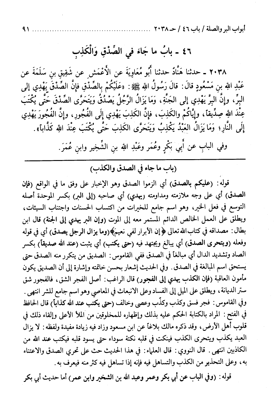 46 - (بَاب مَا جَاءَ فِي الصِّدْقِ وَالْكَذِبِ)