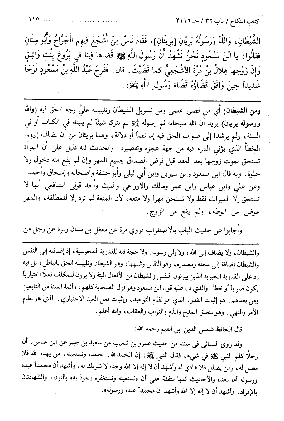 أَنَّ رَجُلًا كَلَّمَ النَّبِيّ صَلَّى اللَّه عَلَيْهِ وَسَلَّمَ فِي شَيْء فَقَالَ النَّبِيّ صَلَّى اللَّه عَلَيْهِ وَسَلَّمَ إِنَّ الْحَمْد لِلَّهِ نَحْمَدهُ وَنَسْتَعِينهُ مَنْ يَهْدِهِ اللَّه فَلَا مُضِلّ لَهُ وَمَنْ يُضْلِلْ فَلَا هَادِي لَهُ وَأَشْهَد أَنْ لا إله إلا الله وحده لا شريك لَهُ وَأَشْهَد أَنَّ مُحَمَّدًا عَبْده وَرَسُوله أَمَّا بَعْد وَالْأَحَادِيث كُلّهَا مُتَّفِقَة عَلَى أَنَّ نَسْتَعِينهُ وَنَسْتَغْفِرهُ وَنَعُوذ بِهِ بِالنُّونِ وَالشَّهَادَتَانِ بِالْإِفْرَادِ وَأَشْهَد أَنْ لَا إِلَه إِلَّا اللَّه وَأَشْهَد أَنَّ محمدا عبده ورسوله