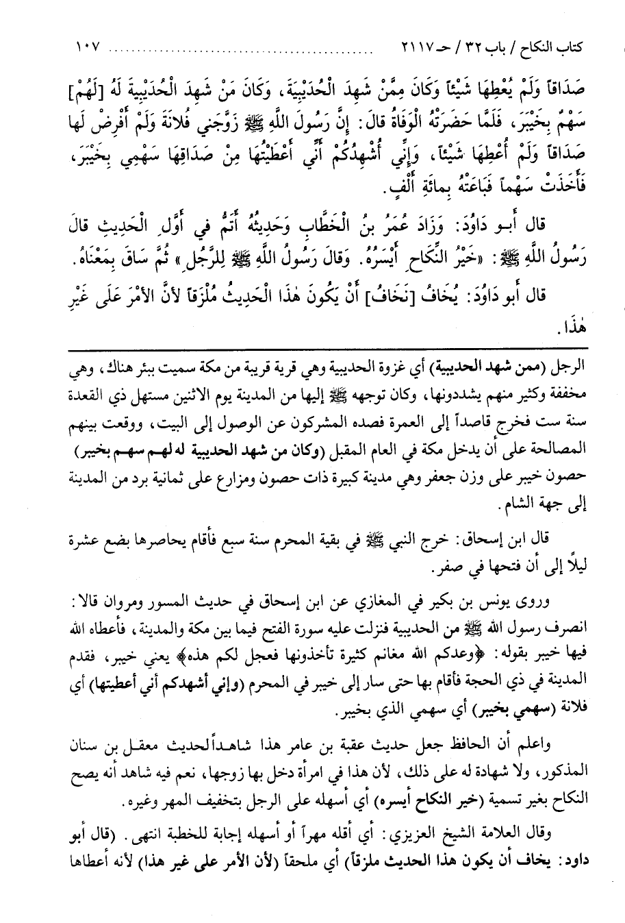 الرَّجُلُ (مِمَّنْ شَهِدَ الْحُدَيْبِيَةَ) أَيْ غَزْوَةَ الْحُدَيْبِيَةِ وَهِيَ قَرْيَةٌ قَرِيبَةٌ مِنْ مَكَّةَ سُمِّيَتْ بِبِئْرٍ هُنَاكَ وَهِيَ مُخَفَّفَةٌ وَكَثِيرٌ مِنْهُمْ يُشَدِّدُونَهَا وَكَانَ تَوَجُّهُهُ صَلَّى اللَّهُ عَلَيْهِ وَسَلَّمَ إِلَيْهَا مِنَ الْمَدِينَةِ يَوْمَ الِاثْنَيْنِ مُسْتَهَلَّ ذِي الْقَعْدَةِ سَنَةَ سِتٍّ فَخَرَجَ قَاصِدًا إِلَى الْعُمْرَةِ فَصَدَّهُ الْمُشْرِكُونَ عَنِ الْوُصُولِ إِلَى الْبَيْتِ وَوَقَعَتْ بَيْنَهُمُ الْمُصَالَحَةُ عَلَى أَنْ يَدْخُلَ مَكَّةَ فِي الْعَامِ الْمُقْبِلِ (وَكَانَ مَنْ شَهِدَ الْحُدَيْبِيَةَ لَهُمْ (لَهُ) سَهْمٌ بِخَيْبَرَ) خَيْبَرُ عَلَى وَزْنِ جَعْفَرٍ وَهِيَ مَدِينَةٌ كَبِيرَةٌ ذَاتُ حُصُونٍ وَمَزَارِعَ عَلَى ثَمَانِيَةِ بُرُدٍ مِنَ الْمَدِينَةِ إِلَى جِهَةِ الشام