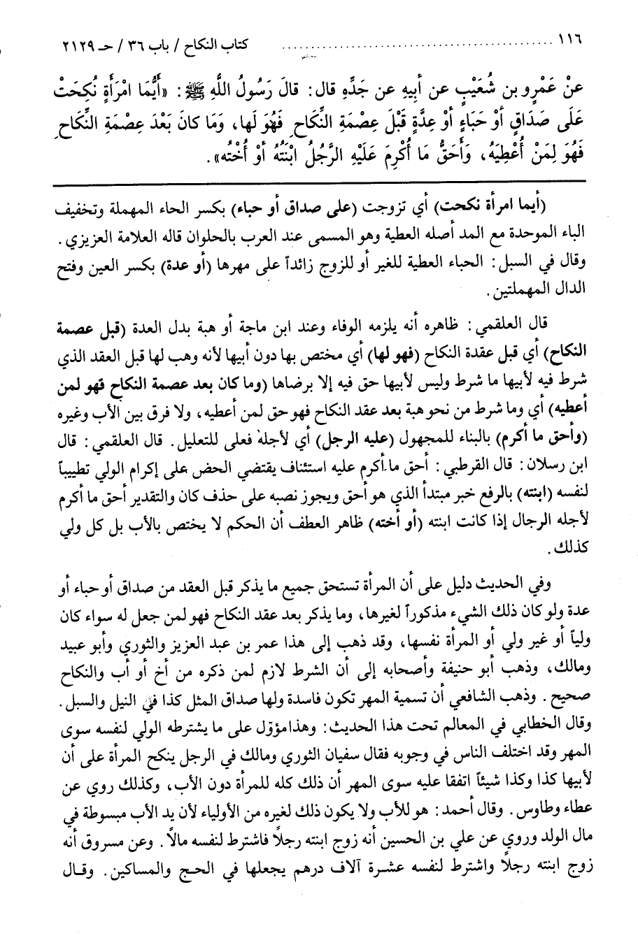 وَفِي الْحَدِيثِ دَلِيلٌ عَلَى أَنَّ الْمَرْأَةَ تَسْتَحِقُّ جَمِيعَ مَا يُذْكَرُ قَبْلَ الْعَقْدِ مِنْ صَدَاقٍ أَوْ حِبَاءٍ أَوْ عِدَّةٍ وَلَوْ كَانَ ذَلِكَ الشَّيْءُ مَذْكُورًا لِغَيْرِهَا وَمَا يُذْكَرُ بَعْدَ عَقْدِ النِّكَاحِ فَهُوَ لِمَنْ جُعِلَ لَهُ سَوَاءً كَانَ وَلِيًّا أَوْ غَيْرَ وَلِيٍّ أَوِ الْمَرْأَةَ نَفْسَهَا وَقَدْ ذَهَبَ إِلَى هَذَا عُمَرُ بْنُ عَبْدِ الْعَزِيزِ وَالثَّوْرِيُّ وَأَبُو عُبَيْدٍ وَمَالِكٌ وَذَهَبَ أَبُو حَنِيفَةَ وَأَصْحَابُهُ إِلَى أَنَّ الشَّرْطَ لَازِمٌ لِمَنْ ذَكَرَهُ مِنْ أَخٍ أَوْ أَبٍ وَالنِّكَاحُ صَحِيحٌ