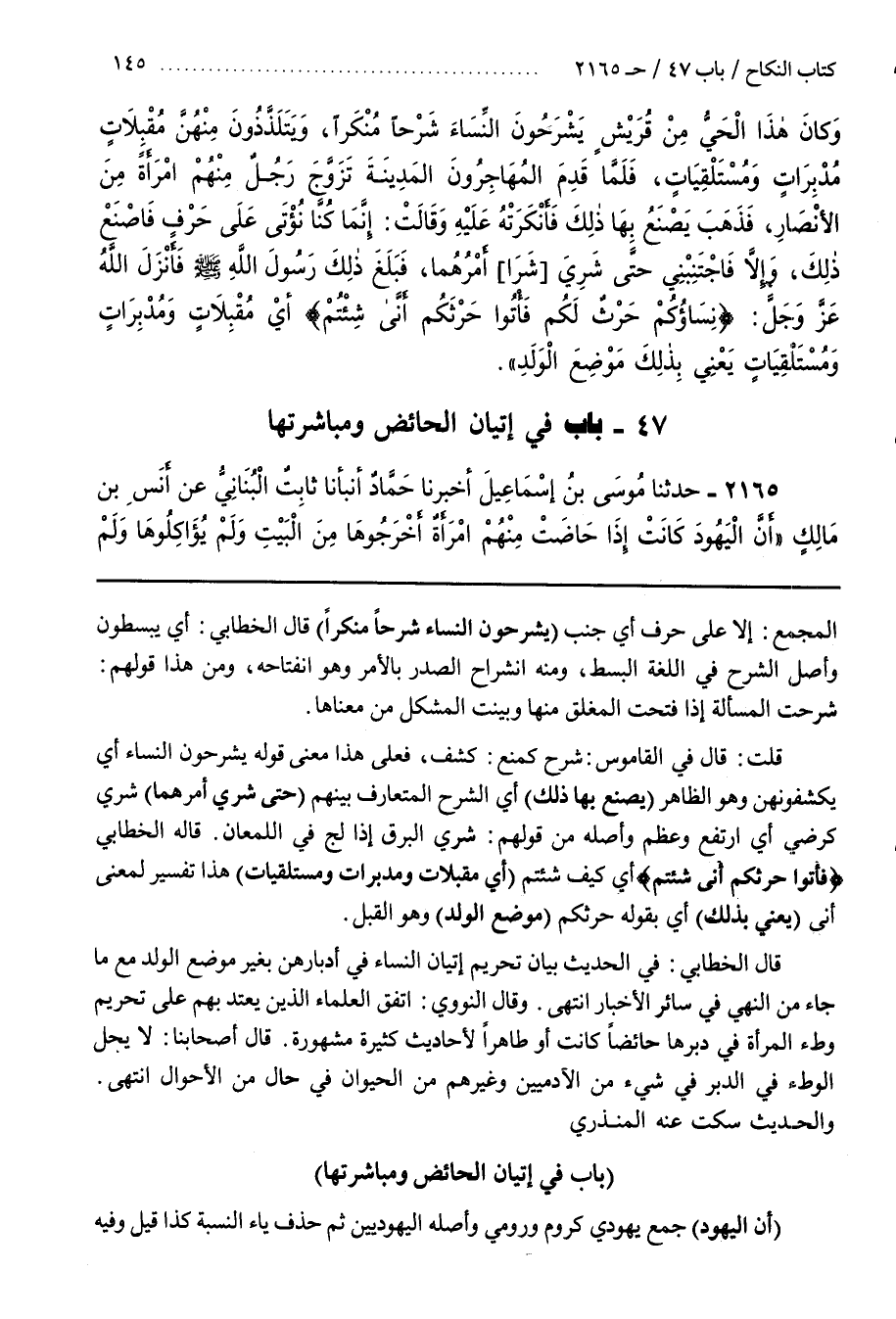 وَقَالَ النَّوَوِيُّ اتَّفَقَ الْعُلَمَاءُ الَّذِينَ يُعْتَدُّ بِهِمْ عَلَى تَحْرِيمِ وَطْءِ الْمَرْأَةِ فِي دُبُرِهَا حَائِضًا كَانَتْ أَوْ طَاهِرًا لِأَحَادِيثَ كَثِيرَةٍ مَشْهُورَةٍ