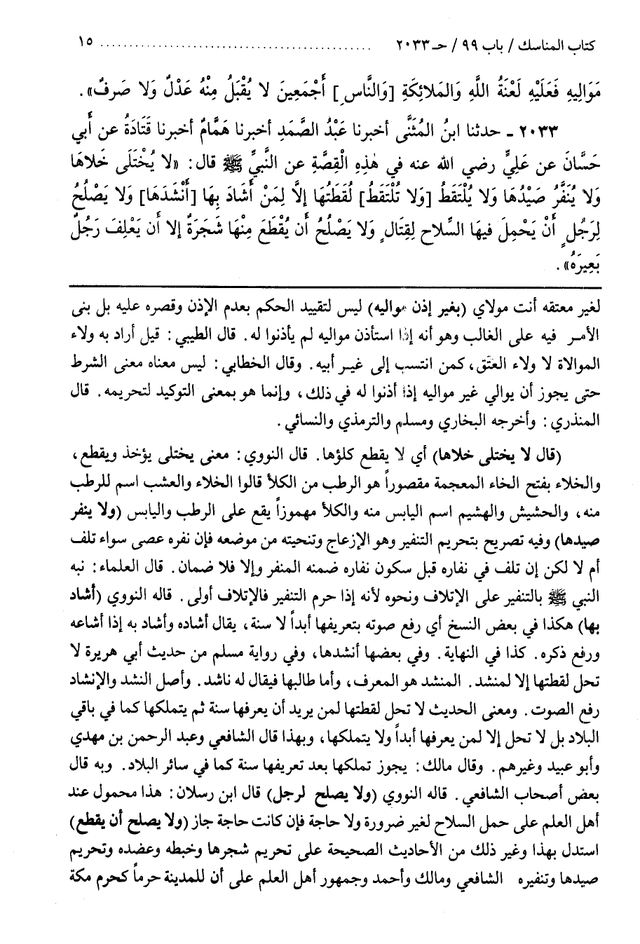 قَالَهُ النَّوَوِيُّ (وَلَا يَصْلُحُ لِرَجُلٍ) قال بن رَسْلَانَ هَذَا مَحْمُولٌ عِنْدَ أَهْلِ الْعِلْمِ عَلَى حَمْلِ السِّلَاحِ لِغَيْرِ ضَرُورَةٍ وَلَا حَاجَةَ فَإِنْ كَانَتْ حَاجَةً جَازَ (وَلَا يَصْلُحُ أَنْ يُقْطَعَ) اسْتُدِلَّ بِهَذَا وَغَيْرِ ذَلِكَ مِنَ الْأَحَادِيثِ الصَّحِيحَةِ عَلَى تَحْرِيمِ شَجَرِهَا وَخَبْطِهِ وَعَضْدِهِ وَتَحْرِيمِ صَيْدِهَا وَتَنْفِيرِهِ