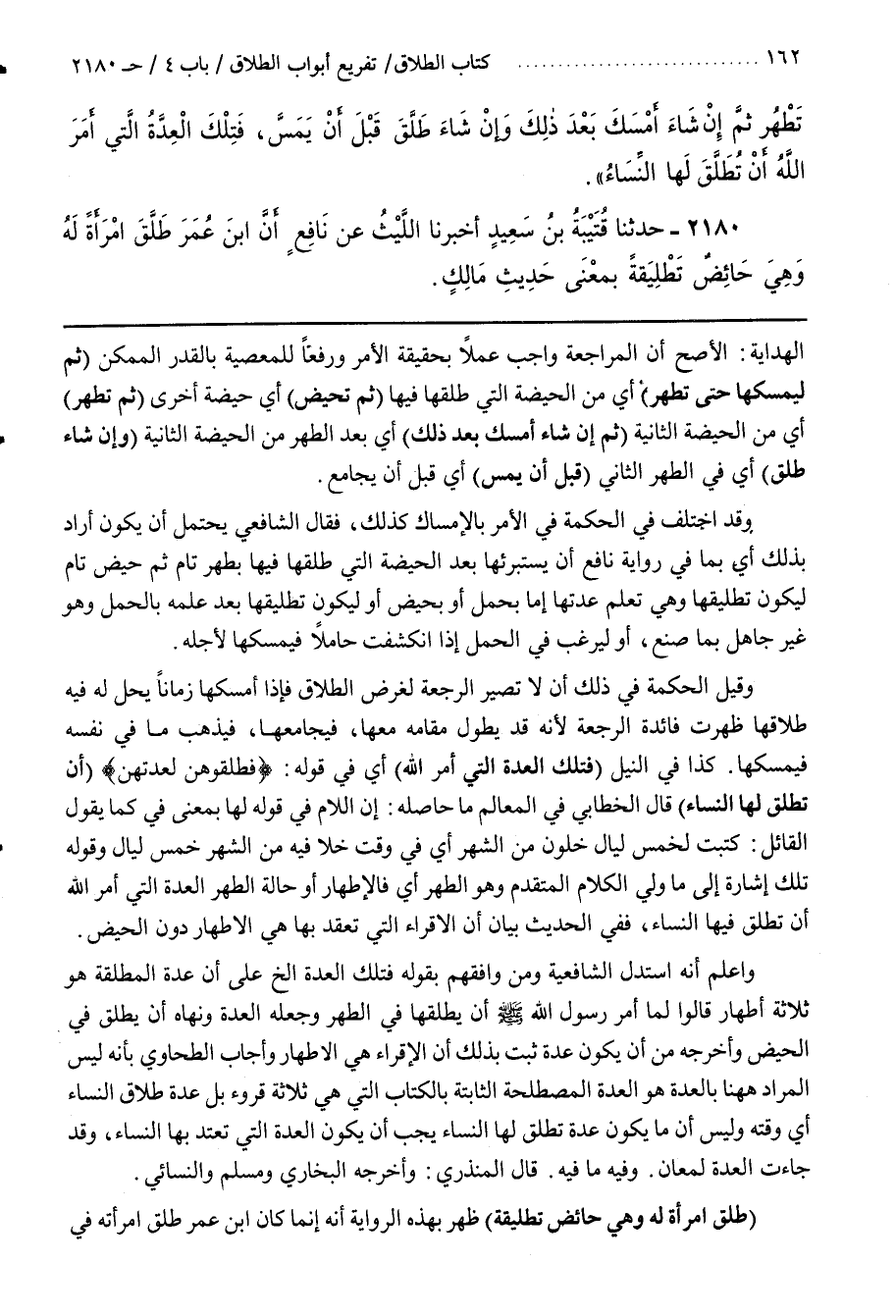 [2180] (طَلَّقَ امْرَأَةً لَهُ وَهِيَ حَائِضٌ تَطْلِيقَةً) ظَهَرَ بِهَذِهِ الرِّوَايَةِ أَنَّهُ إِنَّمَا كان بن عُمَرَ طَلَّقَ امْرَأَتَهُ فِي