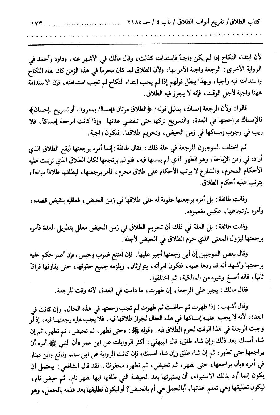 وقوله حَتَّى تَطْهُر ثُمَّ تَحِيض ثُمَّ تَطْهُر ثُمَّ إِنْ شَاءَ أَمْسَكَ بَعْد ذَلِكَ وَإِنْ شَاءَ طلق قال البيهقي أكثر الروايات عن بن عمر أن النبي أَمَرَهُ أَنْ يُرَاجِعهَا حَتَّى تَطْهُر ثُمَّ إِنْ شَاءَ طَلَّقَ وَإِنْ شَاءَ أَمْسَكَ فَإِنْ كَانَتْ الرواية عن سالم ونافع وبن دِينَار فِي أَمْره بِأَنْ يُرَاجِعهَا حَتَّى تَطْهُر ثُمَّ تَحِيض ثُمَّ تَطْهُر مَحْفُوظَة فَقَدْ قَالَ الشَّافِعِيّ يَحْتَمِل أَنْ يَكُون إِنَّمَا أَرَادَ بِذَلِكَ الِاسْتِبْرَاء أَنْ يَسْتَبْرِئهَا بَعْد الْحَيْضَة الَّتِي طَلَّقَهَا فِيهَا بِطُهْرٍ تَامّ ثُمَّ حَيْض تَامّ لِيَكُونَ تَطْلِيقهَا وَهِيَ تَعْلَم عِدَّتهَا أَبِالْحَمْلِ هِيَ أَمْ بِالْحَيْضِ أَوْ لِيَكُونَ تَطْلِيقهَا بَعْد عِلْمه بِالْحَمْلِ وهو