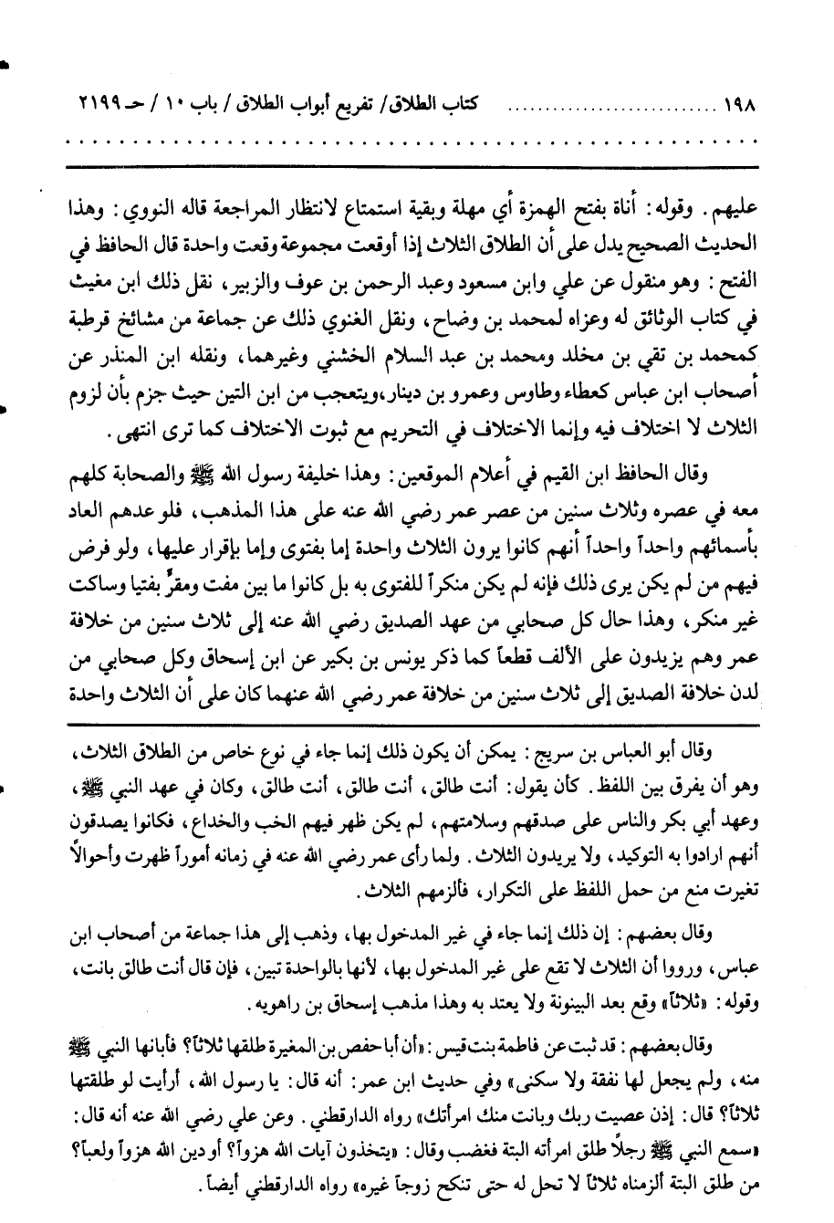 ــــــــــــQوَقَالَ أَبُو الْعَبَّاس بْن سُرَيْج يُمْكِن أَنْ يَكُون ذَلِكَ إِنَّمَا جَاءَ فِي نَوْعٍ خَاصٍّ مِنْ الطَّلَاق الثَّلَاث وَهُوَ أَنْ يُفَرِّق بَيْن اللَّفْظ