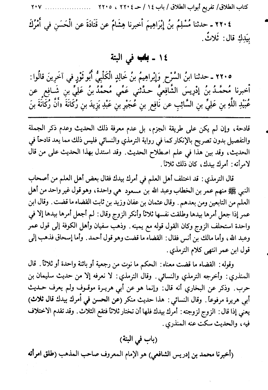 قَالَ التِّرْمِذِيُّ قَدِ اخْتَلَفَ أَهْلُ الْعِلْمِ فِي أَمْرُكِ بِيَدِكِ فَقَالَ بَعْضُ أَهْلِ الْعِلْمِ مِنْ أَصْحَابِ النَّبِيِّ صَلَّى اللَّهُ عَلَيْهِ وَسَلَّمَ مِنْهُمْ عُمَرَ بْنِ الْخَطَّابِ وَعَبْدِ اللَّهِ بْنِ مَسْعُودٍ هِيَ وَاحِدَةٌ وَهُوَ قَوْلُ غَيْرُ وَاحِدٍ مِنْ أَهْلِ الْعِلْمِ مِنَ التَّابِعِينَ وَمَنْ بَعْدَهُمْ