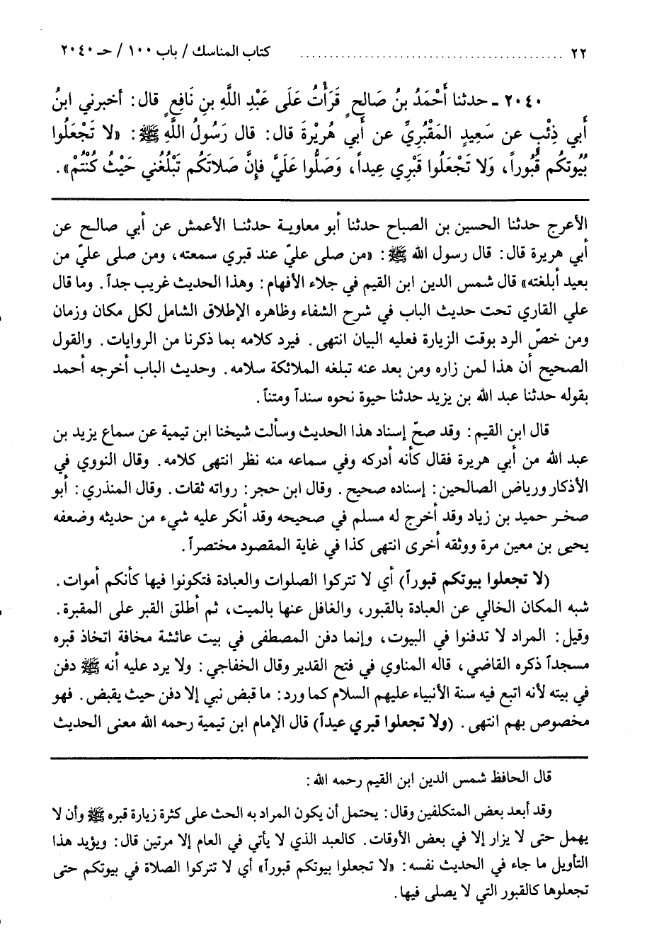 ــــــــــــQقال الحافظ شمس الدين بن القيم رحمه اللَّه وَقَدْ أَبْعَدَ بَعْض الْمُتَكَلِّفِينَ وَقَالَ يَحْتَمِل أَنْ يَكُون الْمُرَاد بِهِ الْحَثّ عَلَى كَثْرَة زِيَارَة قَبْره صَلَّى اللَّه عَلَيْهِ وَسَلَّمَ وَأَنْ لَا يُهْمَل حَتَّى لَا يُزَارَ إِلَّا فِي بَعْض الْأَوْقَات