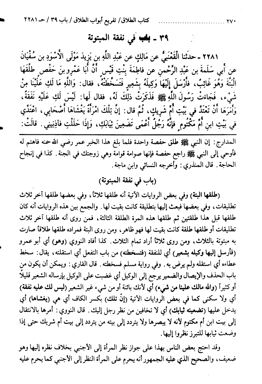 9 - (بَاب فِي نَفَقَةِ الْمَبْتُوتَةِ)