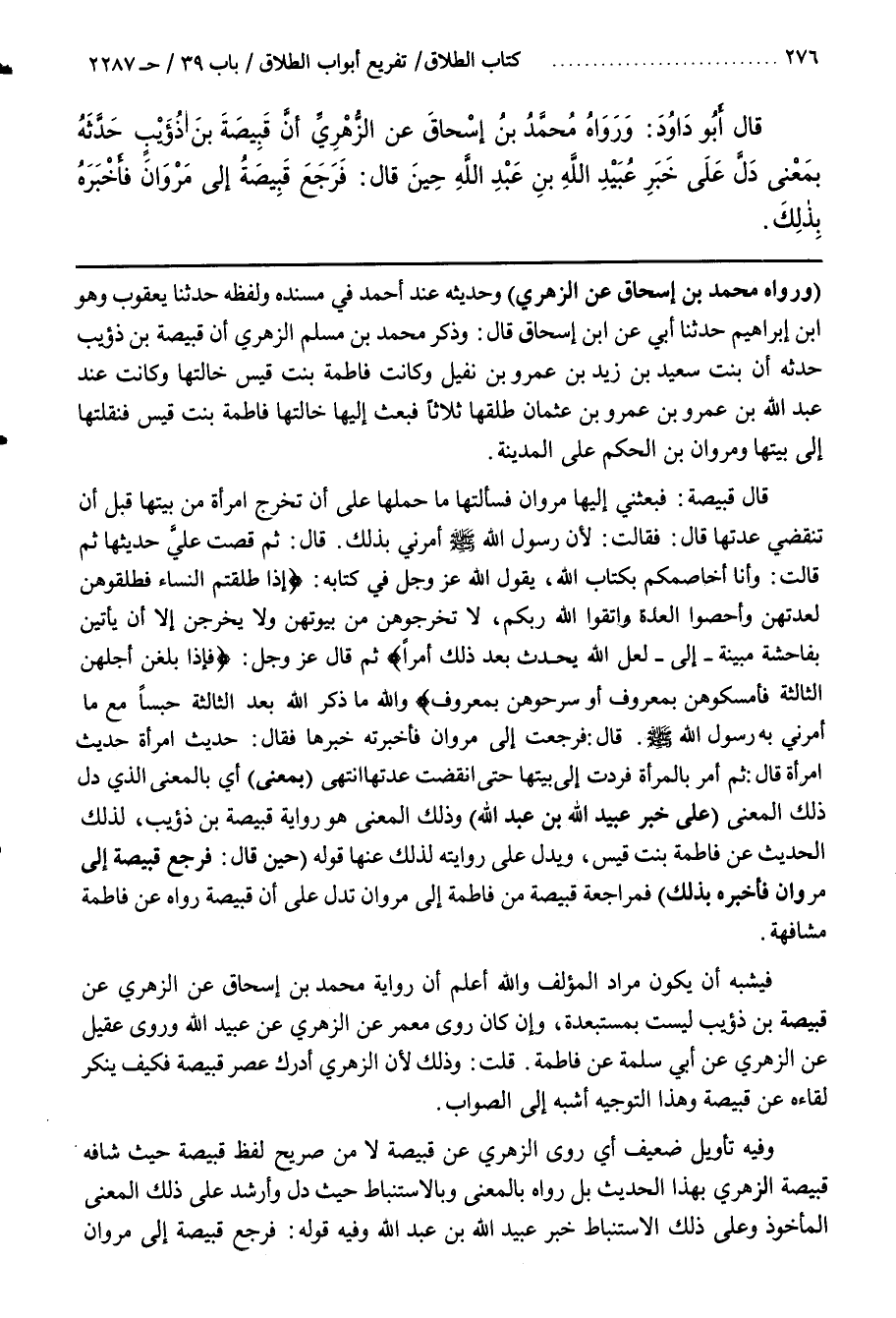 فَشَبَهٌ أَنْ يَكُونَ مُرَادُ الْمُؤَلِّفِ وَاللَّهُ أَعْلَمُ أَنَّ رِوَايَةَ مُحَمَّدِ بْنِ إِسْحَاقَ عَنِ الزُّهْرِيِّ عَنْ قَبِيصَةَ بْنِ ذُؤَيْبٍ لَيْسَتْ بِمُسْتَبْعَدَةٍ وَإِنْ كَانَ رَوَى مَعْمَرٌ عَنِ الزُّهْرِيِّ عَنْ عُبَيْدِ اللَّهِ وَرَوَى عُقَيْلٌ عَنِ الزُّهْرِيِّ عَنْ أَبِي سَلَمَةَ عَنْ فَاطِمَةَ