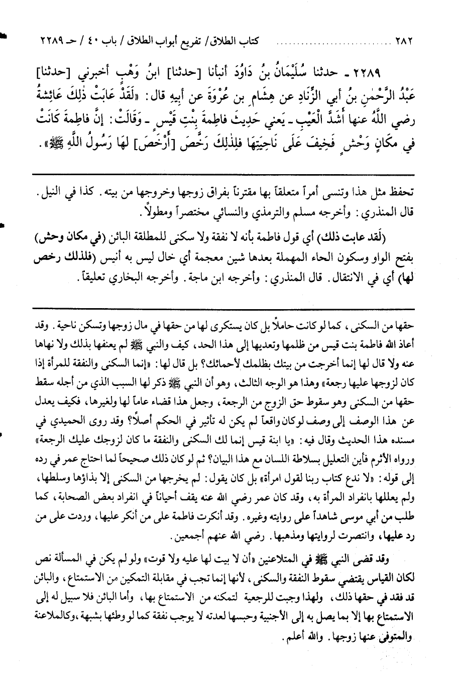 وَقَدْ أَعَاذَ اللَّه فَاطِمَة بِنْت قَيْس مِنْ ظُلْمهَا وَتَعَدِّيهَا إِلَى هَذَا الْحَدّ كَيْف وَالنَّبِيّ صَلَّى اللَّه عَلَيْهِ وَسَلَّمَ لَمْ يُعَنِّفهَا بِذَلِكَ وَلَا نَهَاهَا عَنْهُ وَلَا قَالَ لَهَا إِنَّمَا أُخْرِجْت مِنْ بَيْتك بِظُلْمِك لِأَحْمَائِك بَلْ قَالَ لَهَا إِنَّمَا السُّكْنَى وَالنَّفَقَة لِلْمَرْأَةِ إِذَا كَانَ لِزَوْجِهَا عَلَيْهَا رَجْعَة وَهَذَا هُوَ الْوَجْه الثَّالِث وَهُوَ أَنَّ النَّبِيّ صَلَّى اللَّه عَلَيْهِ وَسَلَّمَ ذَكَر لَهَا السَّبَب الَّذِي مِنْ أَجْله سَقَطَ حَقّهَا مِنْ السُّكْنَى وَهُوَ سُقُوط حَقّ الزَّوْج مِنْ الرَّجْعَة وَجَعَلَ هَذَا قَضَاء عَامًّا لَهَا وَلِغَيْرِهَا فَكَيْف يُعْدَل عَنْ هَذَا الْوَصْف إِلَى وَصْف لَوْ كَانَ وَاقِعًا لَمْ يَكُنْ لَهُ تَأْثِير فِي الْحُكْم أَصْلًا وَقَدْ رَوَى الْحُمَيْدِيّ فِي مُسْنَده هَذَا الْحَدِيث وَقَالَ فِيهِ يَا اِبْنَة قَيْس إِنَّمَا لَك السُّكْنَى وَالنَّفَقَة مَا كَانَ لِزَوْجِك عَلَيْك الرَّجْعَة وَرَوَاهُ الْأَثْرَم فَأَيْنَ التَّعْلِيل بِسَلَاطَةِ اللِّسَان مَعَ هَذَا الْبَيَان ثُمَّ لَوْ كَانَ ذَلِكَ صَحِيحًا لَمَا اِحْتَاجَ عُمَر فِي رَدّه إِلَى قَوْله لَا نَدَع كِتَاب رَبّنَا لِقَوْلِ اِمْرَأَة بَلْ كَانَ يَقُول لَمْ يُخْرِجهَا مِنْ السُّكْنَى إِلَّا بَذَاؤُهَا وَسَلَطُهَا وَلَمْ يُعَلِّلهَا بِانْفِرَادِ الْمَرْأَة بِهِ وَقَدْ كَانَ عُمَر رَضِيَ اللَّه عَنْهُ يَقِف أَحْيَانًا فِي اِنْفِرَاد بَعْض الصَّحَابَة كَمَا طَلَب مِنْ أَبِي مُوسَى شَاهِدًا عَلَى رِوَايَته وَغَيْره