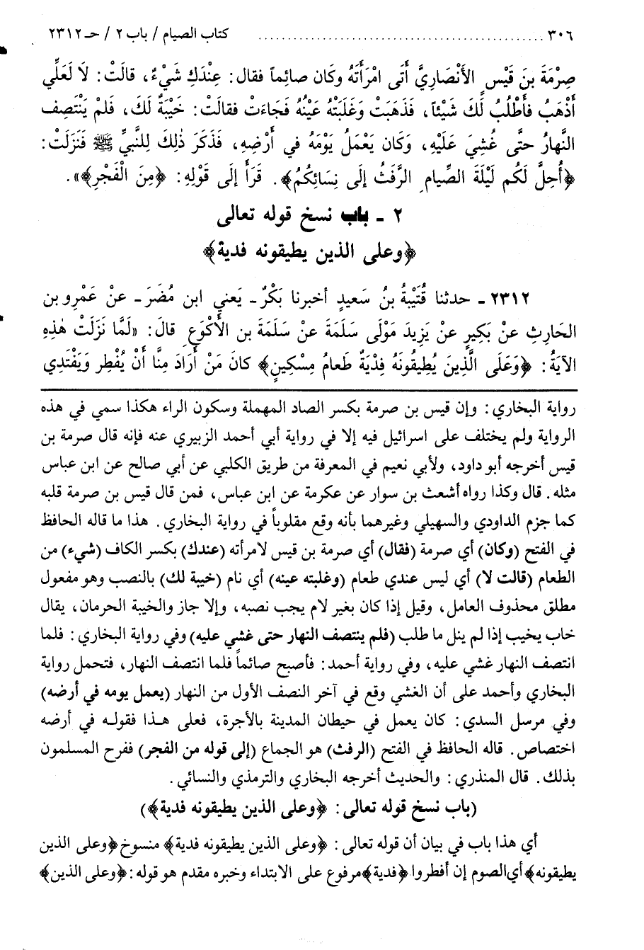 أَيْ هَذَا بَابٌ فِي بَيَانِ أَنَّ قَوْلَهُ تعالى وعلى الذين يطيقونه فدية منسوخ