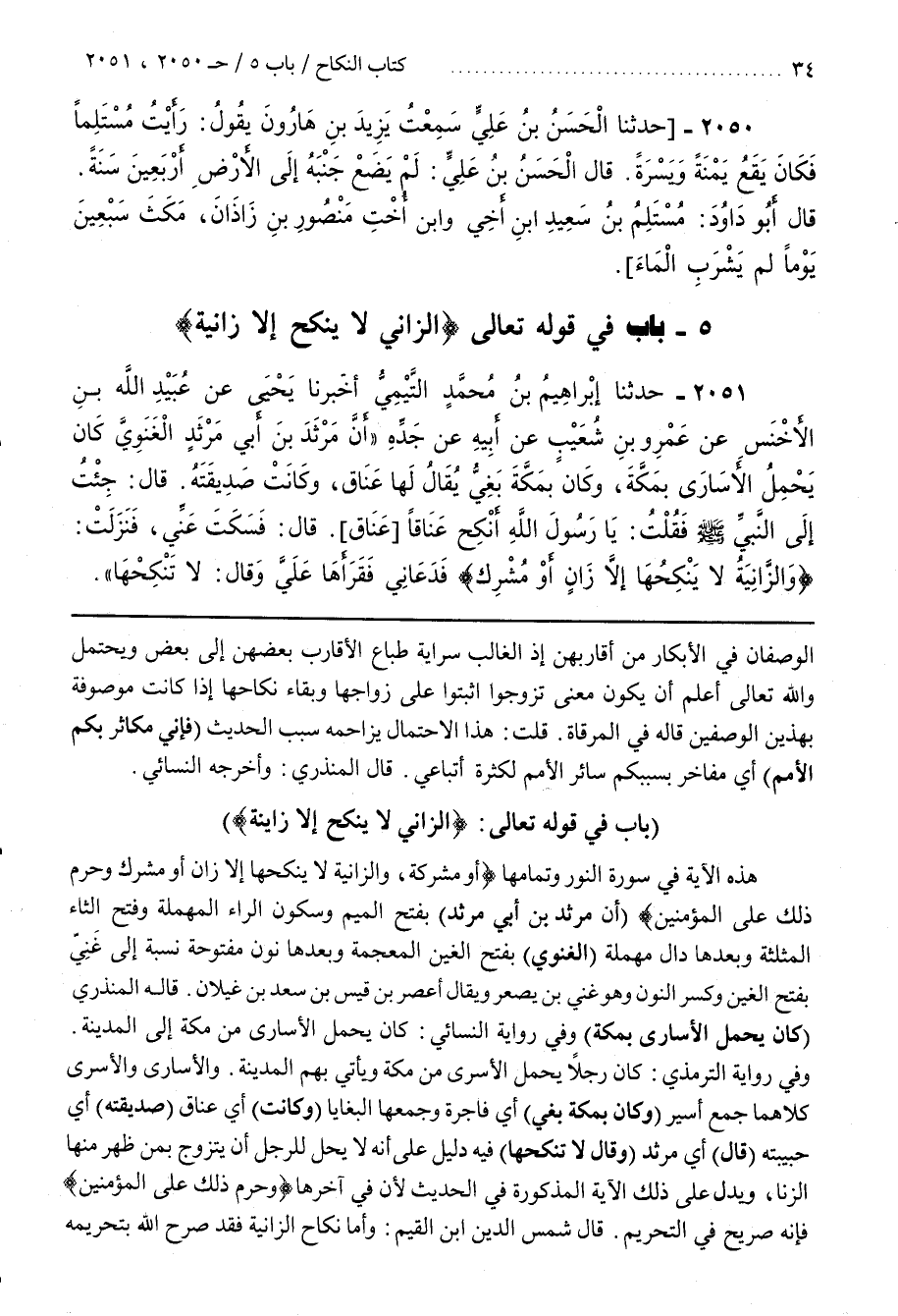 (بَاب فِي قَوْلِهِ تَعَالَى الزَّانِي لَا يَنْكِحُ إِلَّا زانية)