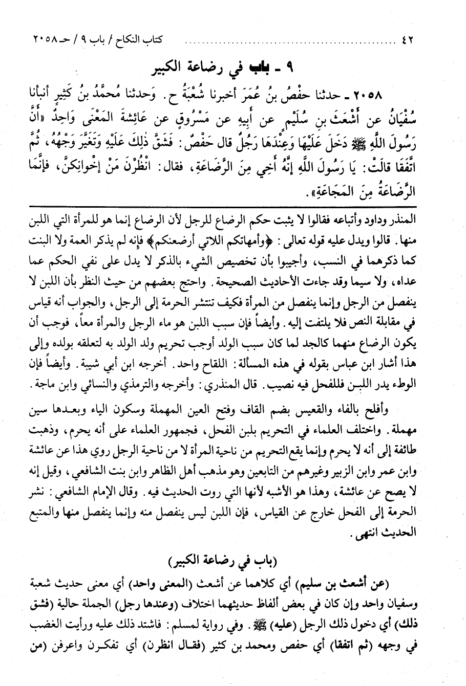 [2058] (عَنْ أَشْعَثَ بْنِ سُلَيْمٍ) أَيْ كِلَاهُمَا عَنْ أَشْعَثَ (الْمَعْنَى وَاحِدٌ) أَيْ مَعْنَى حَدِيثِ شُعْبَةَ وَسُفْيَانَ وَاحِدٌ وَإِنْ كَانَ فِي بَعْضِ أَلْفَاظِ حَدِيثِهِمَا اخْتِلَافٌ (وَعِنْدَهَا رَجُلٌ) الْجُمْلَةُ حَالِيَّةٌ (فَشَقَّ ذَلِكَ) أَيْ دُخُولُ ذَلِكَ الرَّجُلِ (عَلَيْهِ) صَلَّى اللَّهُ عَلَيْهِ وَسَلَّمَ