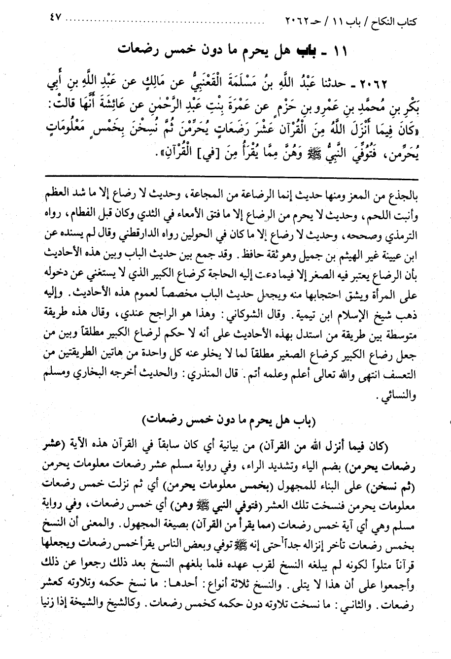 1 - (بَاب هَلْ يُحَرِّمُ مَا دُونَ خَمْسِ رَضَعَاتٍ)