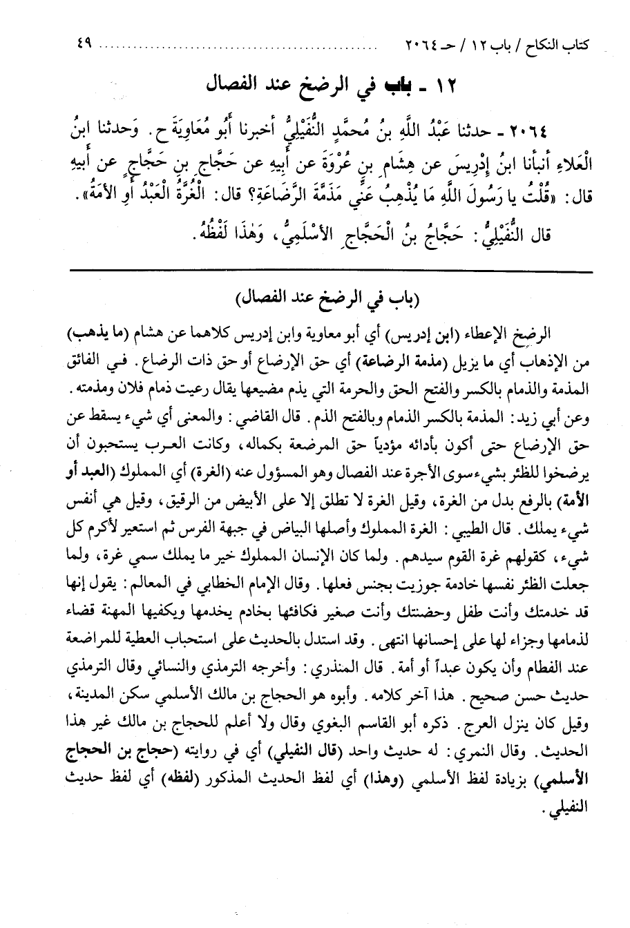 قَالَ الْقَاضِي وَالْمَعْنَى أَيْ شَيْءٌ يُسْقِطُ عَنِّي حَقَّ الْإِرْضَاعِ حَتَّى أَكُونَ بِأَدَائِهِ مُؤَدِّيًا حَقَّ الْمُرْضِعَةِ بِكَمَالِهِ وَكَانَتِ الْعَرَبُ يَسْتَحِبُّونَ أَنْ يَرْضِخُوا لِلظِّئْرِ بِشَيْءٍ سِوَى الْأُجْرَةِ عِنْدَ الْفِصَالِ وَهُوَ الْمَسْئُولُ عَنْهُ (الْغُرَّةُ) أَيِ الْمَمْلُوكُ (الْعَبْدُ أَوِ الْأَمَةُ) بَالرَّفْعِ بَدَلٌ مِنَ الْغُرَّةِ وَقِيلَ الْغُرَّةُ لَا تُطْلَقُ إِلَّا عَلَى الْأَبْيَضِ مِنَ الرَّقِيقِ وَقِيلَ هِيَ أَنْفَسُ شَيْءٍ يُمْلَكُ