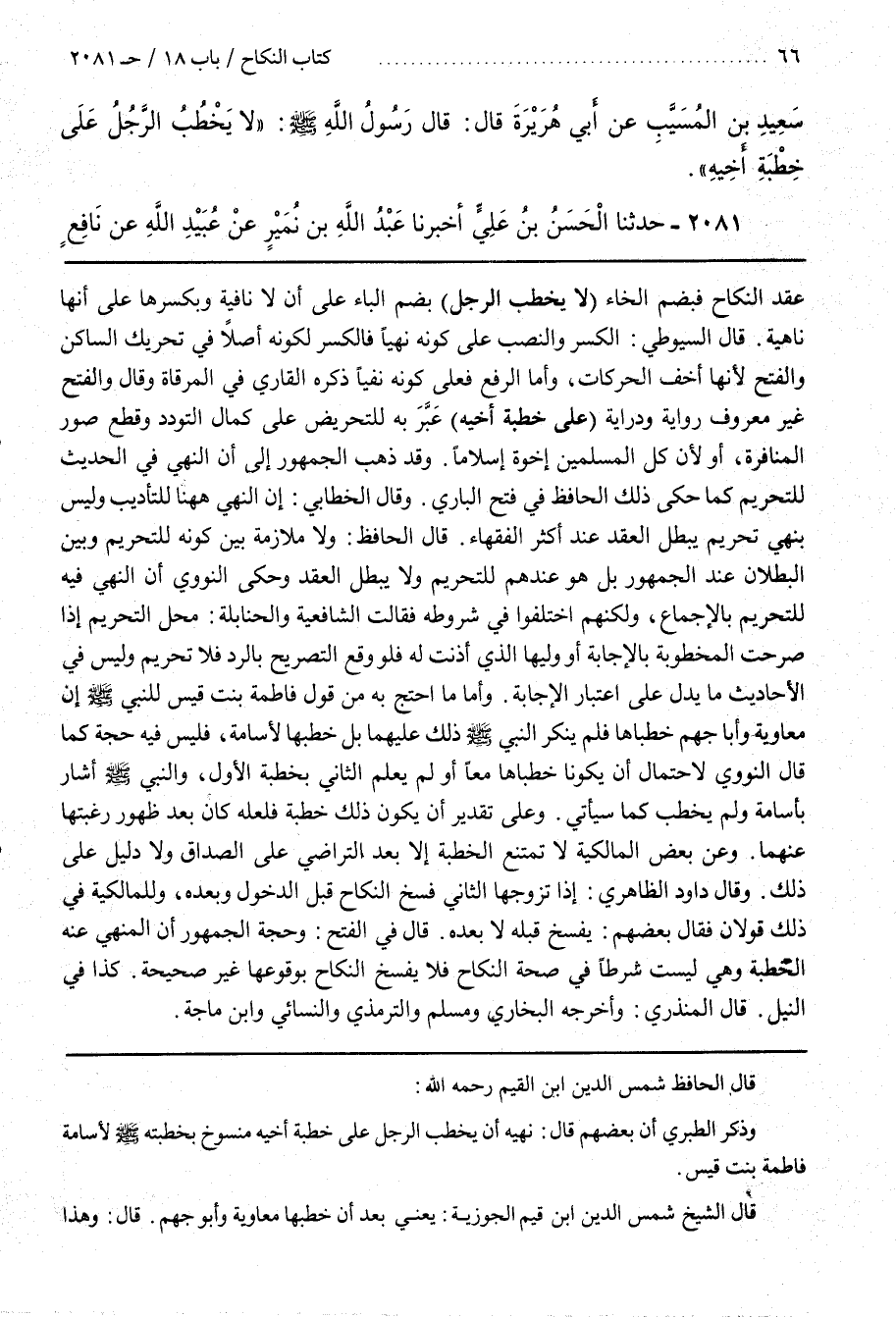 ــــــــــــQقال الحافظ شمس الدين بن القيم رحمه اللَّه وَذَكَرَ الطَّبَرِيُّ أَنَّ بَعْضهمْ قَالَ نَهْيه أَنْ يَخْطُب الرَّجُل عَلَى خِطْبَة أَخِيهِ مَنْسُوخ بِخِطْبَتِهِ صَلَّى اللَّه عَلَيْهِ وَسَلَّمَ لِأُسَامَة فَاطِمَة بنت قيس