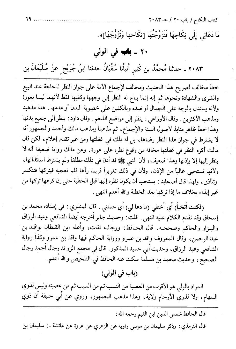 [2083] الْمُرَادُ بَالْوَلِيِّ هُوَ الْأَقْرَبُ مِنَ الْعَصَبَةِ مِنَ النَّسَبِ ثُمَّ مِنَ السَّبَبِ ثُمَّ مِنْ عَصَبَتِهِ وَلَيْسَ لِذَوِي السِّهَامِ وَلَا لِذَوِي الْأَرْحَامِ وِلَايَةٌ وَهَذَا مَذْهَبُ الْجُمْهُورِ وَرُوِيَ عَنْ أَبِي حَنِيفَةَ أَنَّ ذَوِي