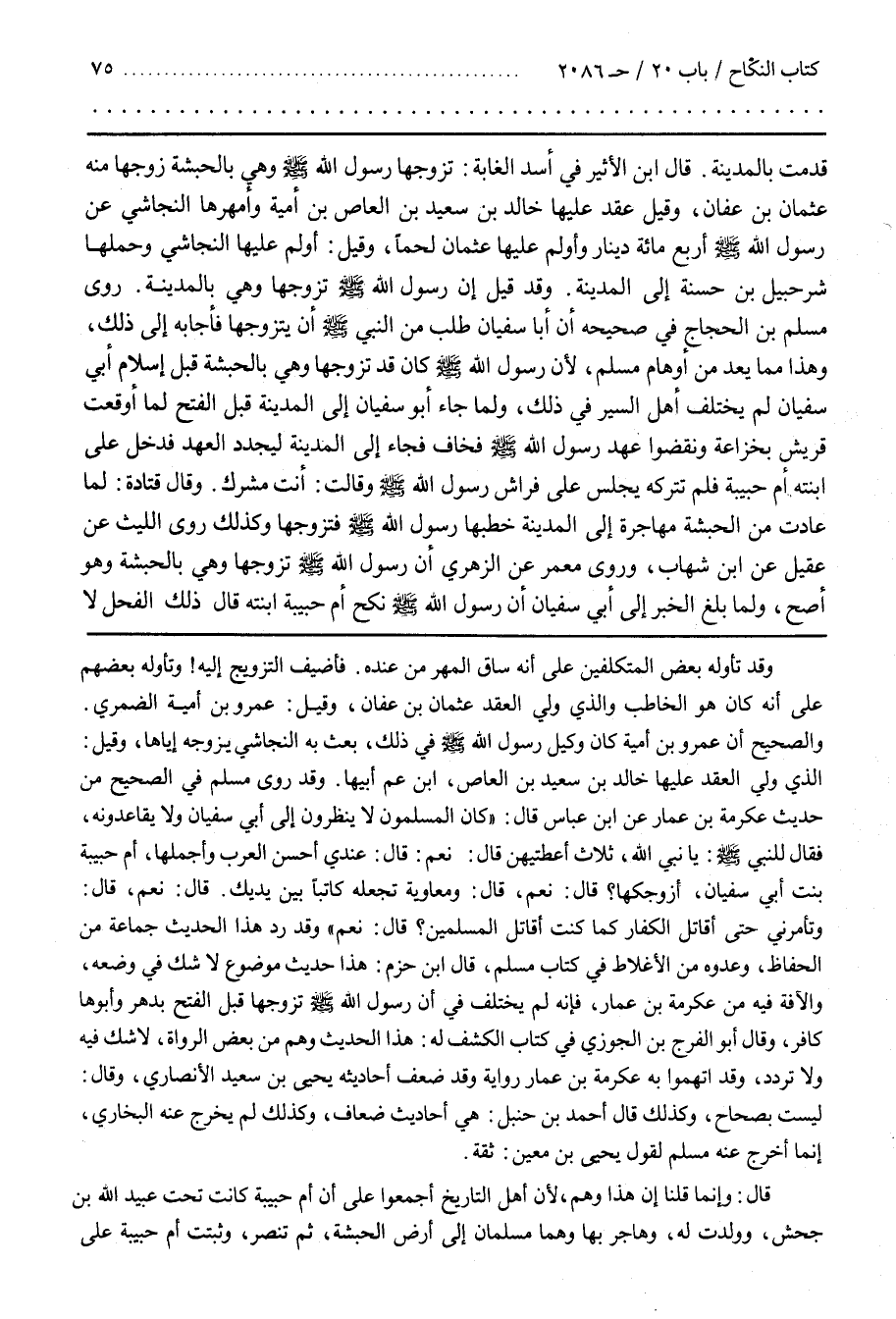 قال بن الْأَثِيرِ فِي أُسْدِ الْغَابَةِ تَزَوَّجَهَا رَسُولُ اللَّهِ صَلَّى اللَّهُ عَلَيْهِ وَسَلَّمَ وَهِيَ بَالْحَبَشَةِ زَوَّجَهَا مِنْهُ عُثْمَانُ بْنُ عَفَّانَ وَقِيلَ عَقَدَ عَلَيْهَا خالد بن سعيد بن العاص بن أمية وَأَمْهَرَهَا النَّجَاشِيُّ عَنْ رَسُولِ اللَّهِ صَلَّى اللَّهُ عَلَيْهِ وَسَلَّمَ أربع مائة دِينَارٍ وَأَوْلَمَ عَلَيْهَا عُثْمَانُ لَحْمًا وَقِيلَ أَوْلَمَ عَلَيْهَا النَّجَاشِيُّ وَحَمَلَهَا شُرَحْبِيلُ بْنُ حَسَنَةَ إِلَى الْمَدِينَةِ