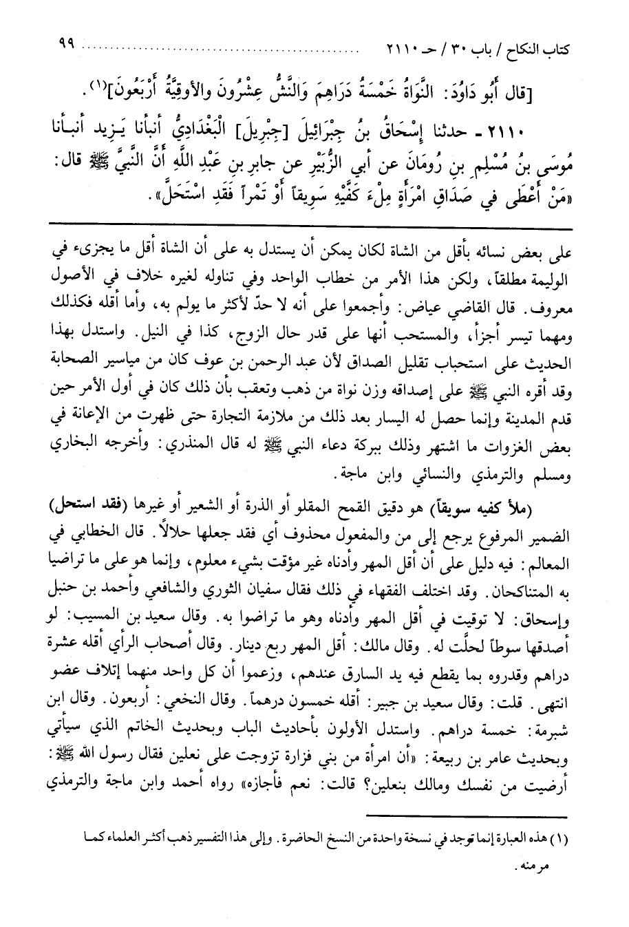 [2110] (مِلْءُ كَفَّيْهِ سَوِيقًا) هُوَ دَقِيقُ الْقَمْحِ الْمَقْلُوِّ أَوِ الذُّرَةِ أَو الشَّعِيرِ أَوْ غَيْرِهَا (فَقَدِ اسْتَحَلَّ) الضَّمِيرُ الْمَرْفُوعُ يَرْجِعُ إِلَى مَنْ وَالْمَفْعُولُ مَحْذُوفٌ أَيْ فَقَدْ جَعَلَهَا حَلَالًا