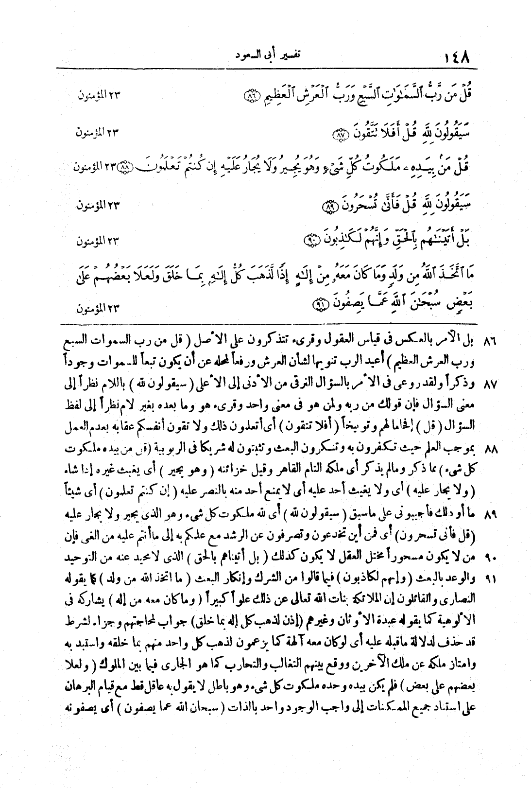 سورة المؤمنون (86 91) بلِ الأمرُ بالعكس في قياس العقول وقرئ تتذكَّرون على الأصل