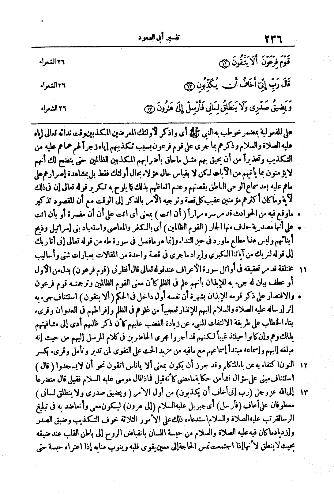 {ويضيق صدري ولا ينطلق لساني} معطوفا على أخافُ {فَأَرْسِلْ} أي جبريلَ عليهِ السَّلامُ {إِلَىَّ هارون} ليكون معنى وأتعاضدُ به في تبليغِ الرِّسالة رتَّب عليه الصَّلاةُ والسَّلامُ من حَبسةِ اللِّسان بانقباضِ الرُّوحِ إلى باطنِ القلبِ عند ضيقِه بحيث لا ينطبق لأنَّها إذا اجتمعتْ تمسُّ الحاجةُ إلى معينٍ يُقوِّي قلبه وينوبُ منابَه إذا اعتراء حبسه حتى