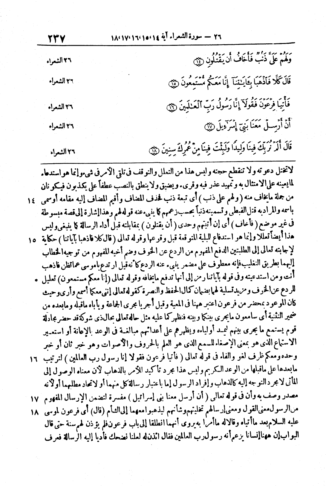 {وَلَهُمْ عَلَىَّ ذَنبٌ} أي تبعةُ ذنبٍ فحُذف المضافُ وأُقيمَ المضافُ إليه مقامه أو سمِّي باسمِه والمرادُ به قتلُ القِبْطيِّ وتسميتُه ذنباً بحسبِ زعمِهم كما ينبىءُ عنه قولُه لهم وهذا إشارةٌ إلى قصَّةٍ مبسوطةٍ في غيرِ موضعٍ {فَأَخَافُ} أي إنْ أتيتهم وحدي {أَن يَقْتُلُونِ} بمقابلتِه قبل أداءِ الرِّسالةِ كما ينبِغي وليس هذا أيضاً تعلُّلاً وإنما هو استدفاعٌ المبلية المتوقّعةِ قبل وقوعِها وقوله تعالى
