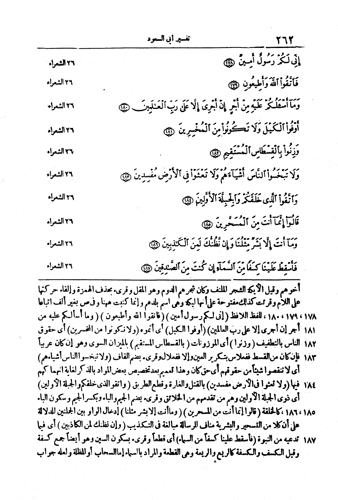 {إِنِّي لَكُمْ رَسُولٌ أَمِينٌ} {فاتقوا الله وأطيعون} {وما أَسْأَلُكُمْ عَلَيْهِ مِنْ أَجْرٍ إن أجرى إلا على رب العالمين} {وَأَوْفُوا الكيل} أي أتمُّوه {وَلاَ تَكُونُواْ مِنَ المخسرين} أي حقوقَ النَّاس بالتّطفيف